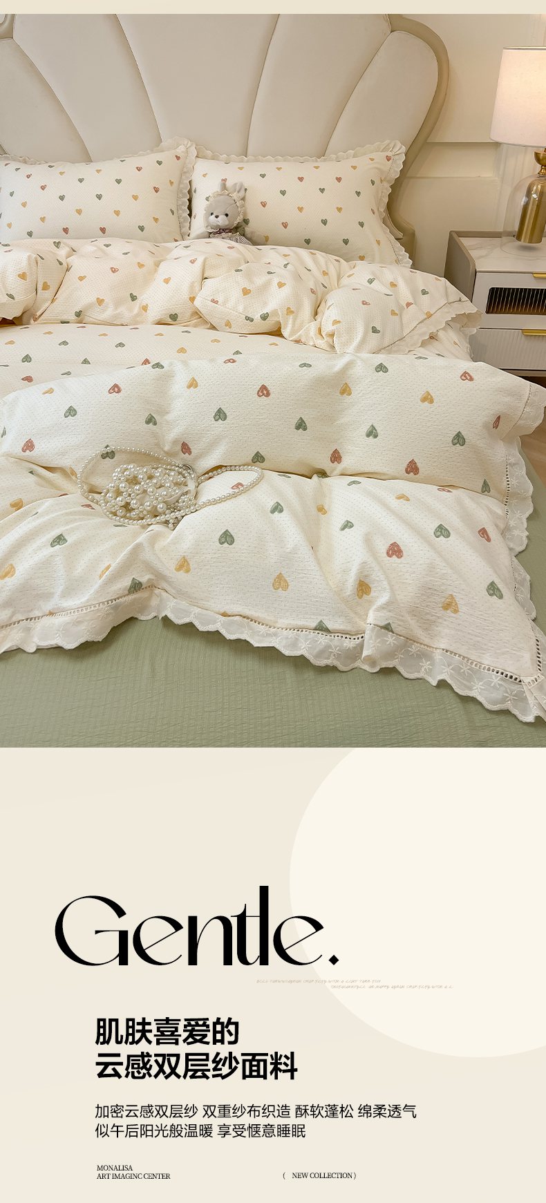 (总)韩巢家纺 2026新款花边款针织双层纱四件套,爱心,彩色蝴蝶结,春和豆沙,春和米,春意花开,叮当熊,花田薇,可爱多兰,可爱熊,敏敏灰,魔法森林,木昔,奶油波点米,奶油狗,巧克力,塞林娜绿,塞林娜米黄,问秋黄,问秋棕,熊先生,悠然紫,云山沐晚