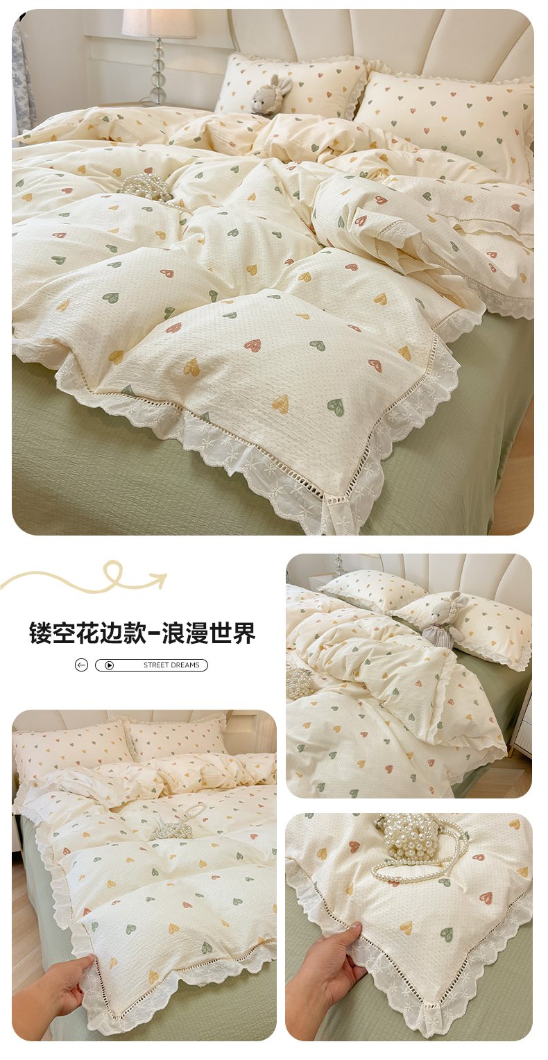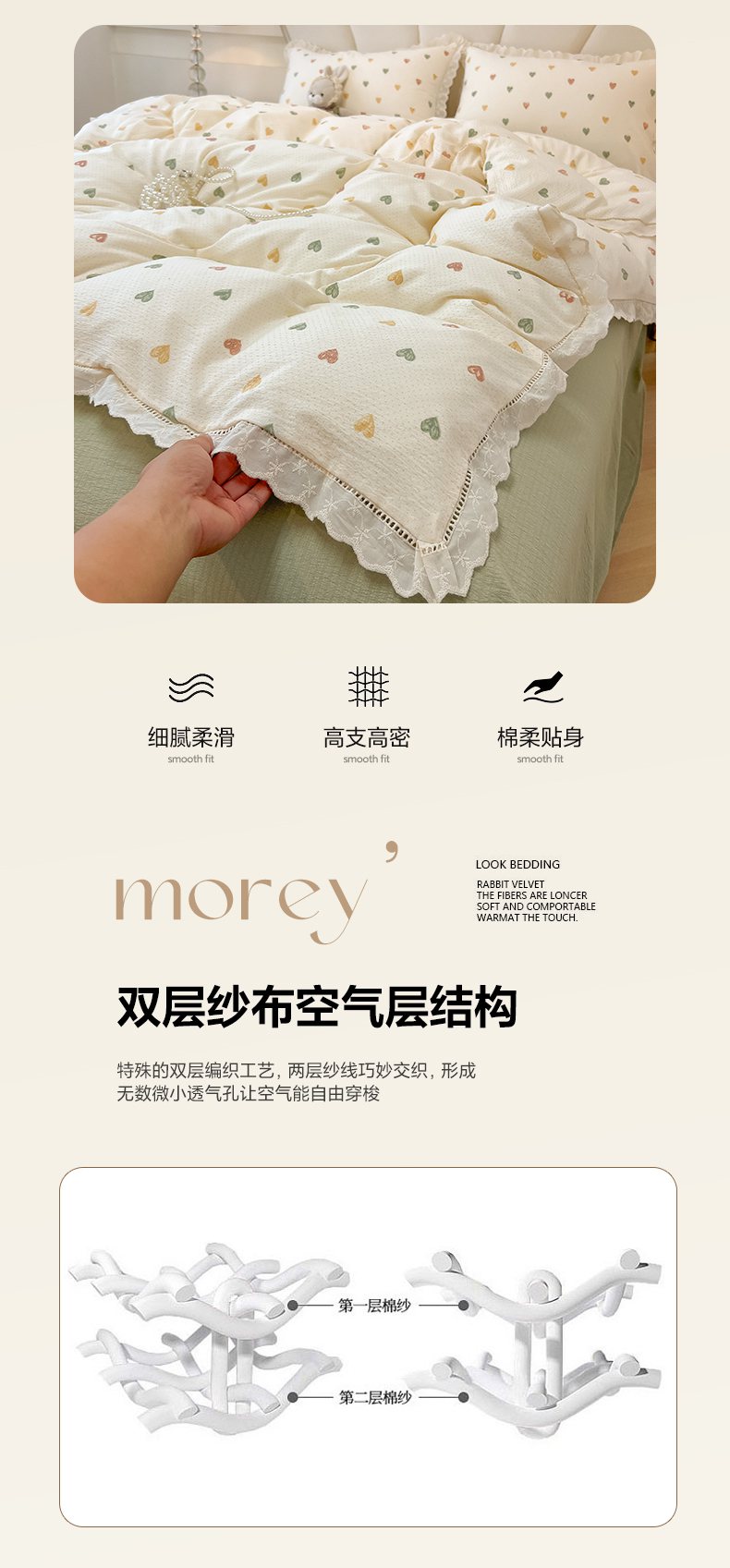 (总)韩巢家纺 2025新款双层纱镂空花边被套直播热销款四件套(提供卖家秀)