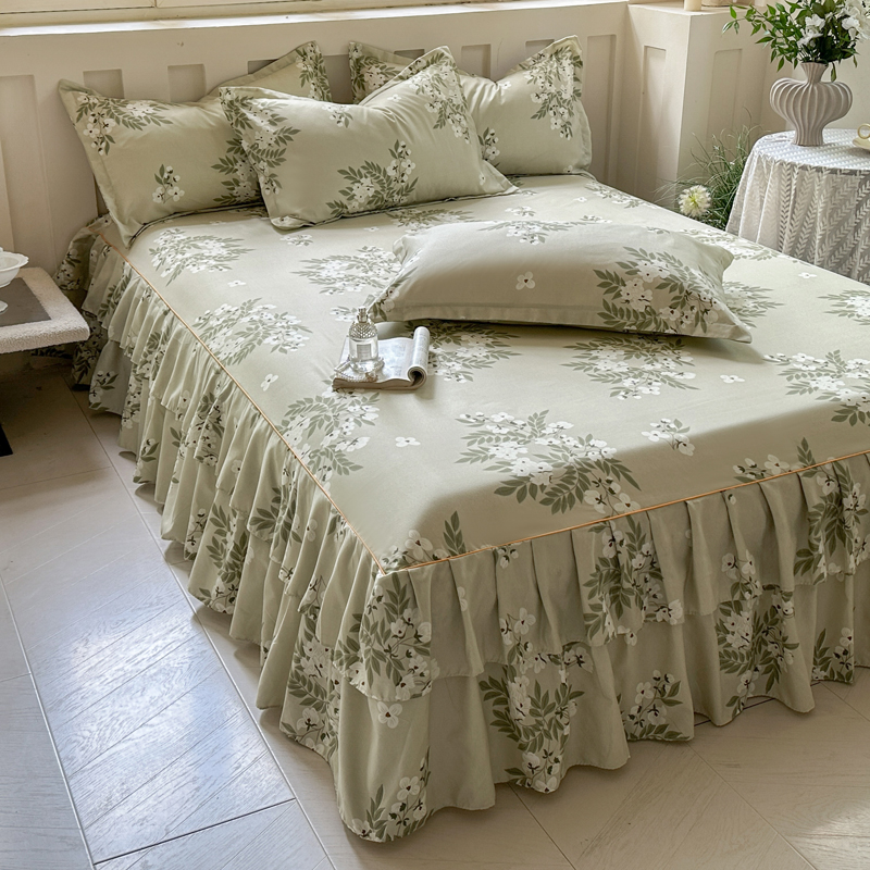 (总)雨田 2021新款韩版双边夹棉床裙四件套,春之絮,极简生活,情深似海,小香风,星光飘絮,玉兰