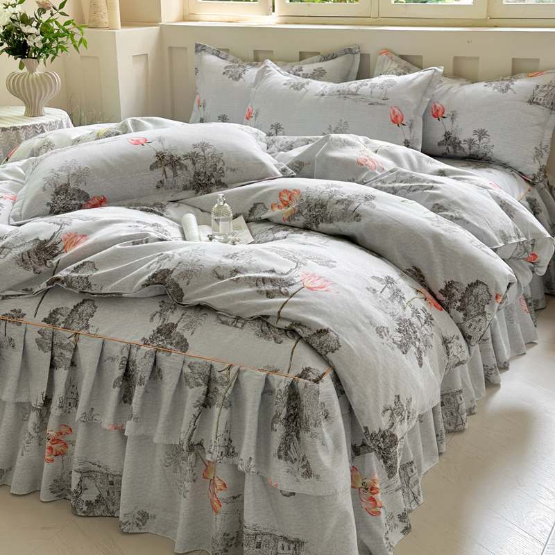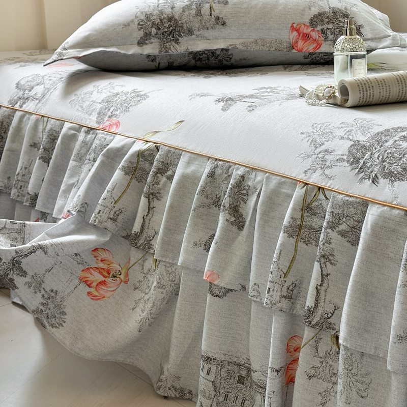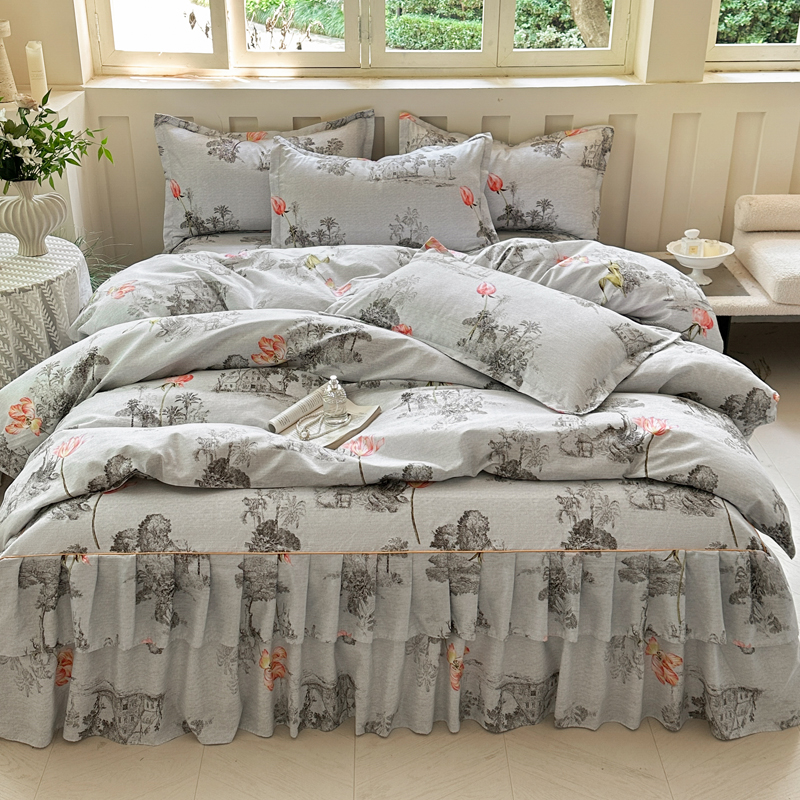 当前位置: 91家纺网 > 商品网购 > 床品套件 > 四件套 > 其它四件套 > 雨田家纺 2025新款柔软亲肤印花床裙四件套 桑秋