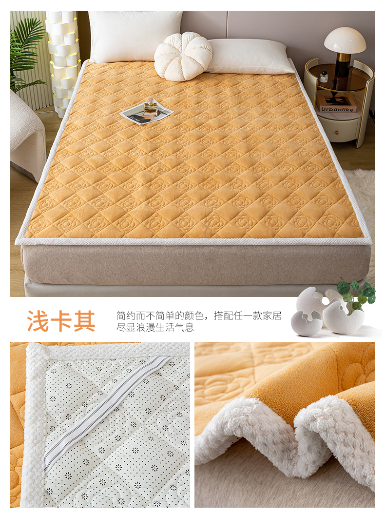 商品名称:正邦家纺 2025新款学生宿舍上下铺牛奶绒刺绣玫瑰花夹棉床垫床护垫床褥子 浅卡其
