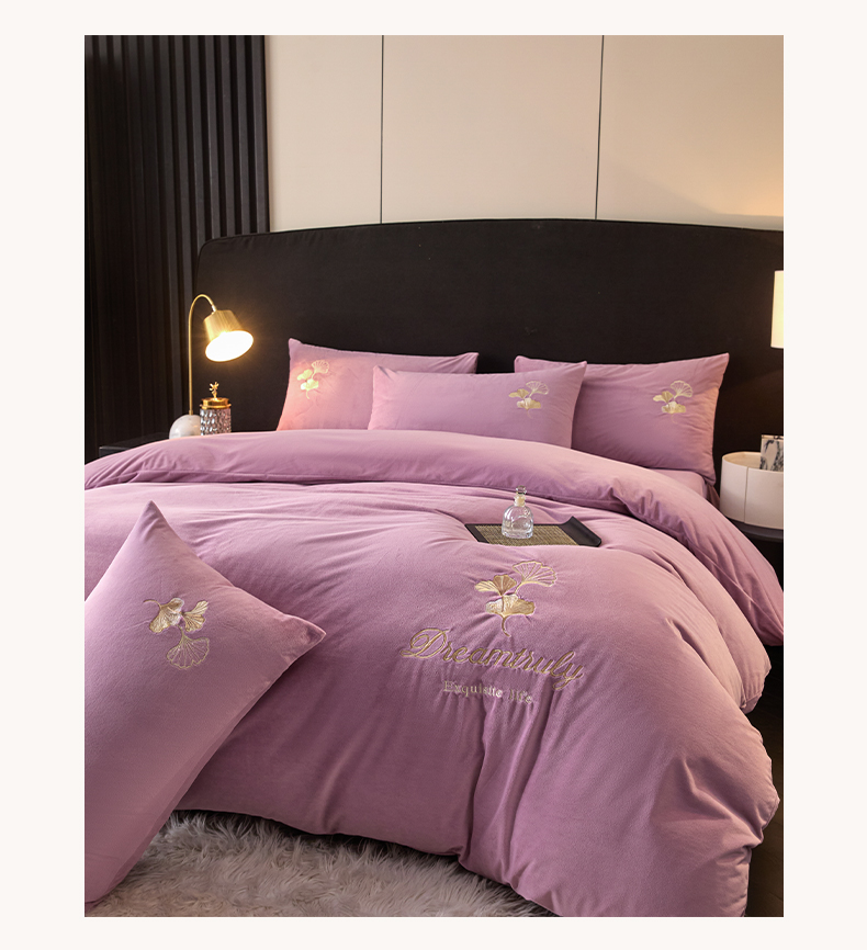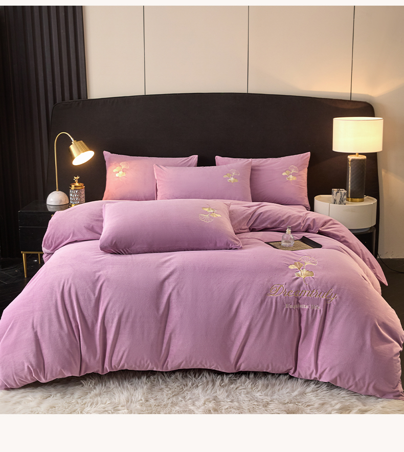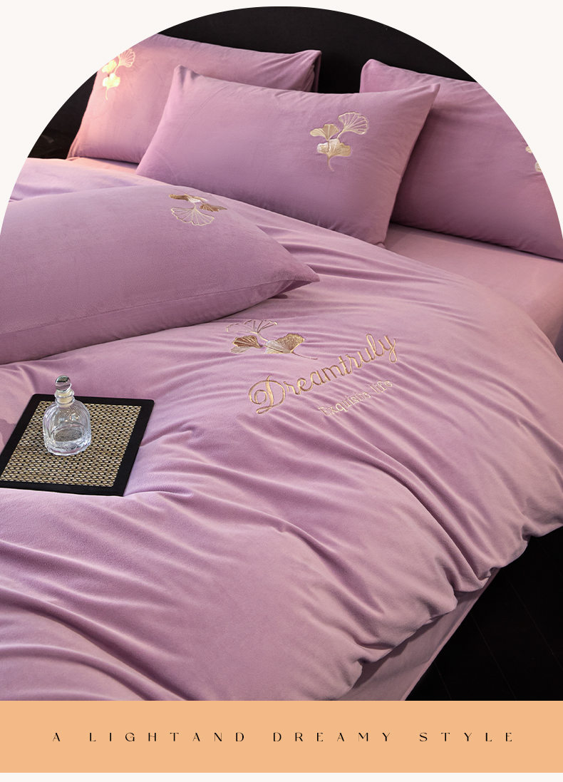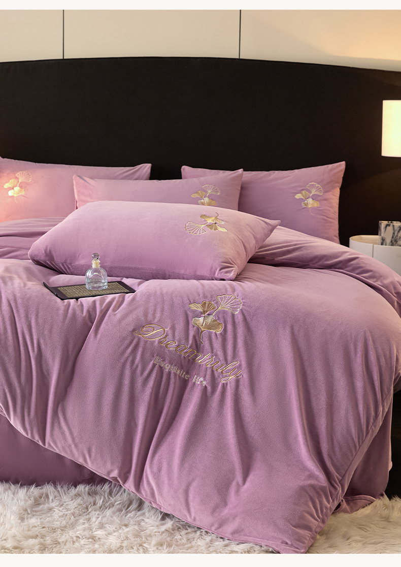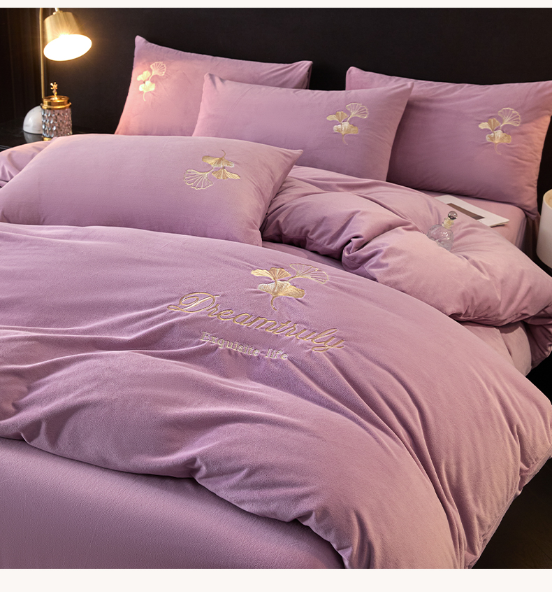 (总)如一 2025新款水晶绒纯色刺绣四件套-银杏系列