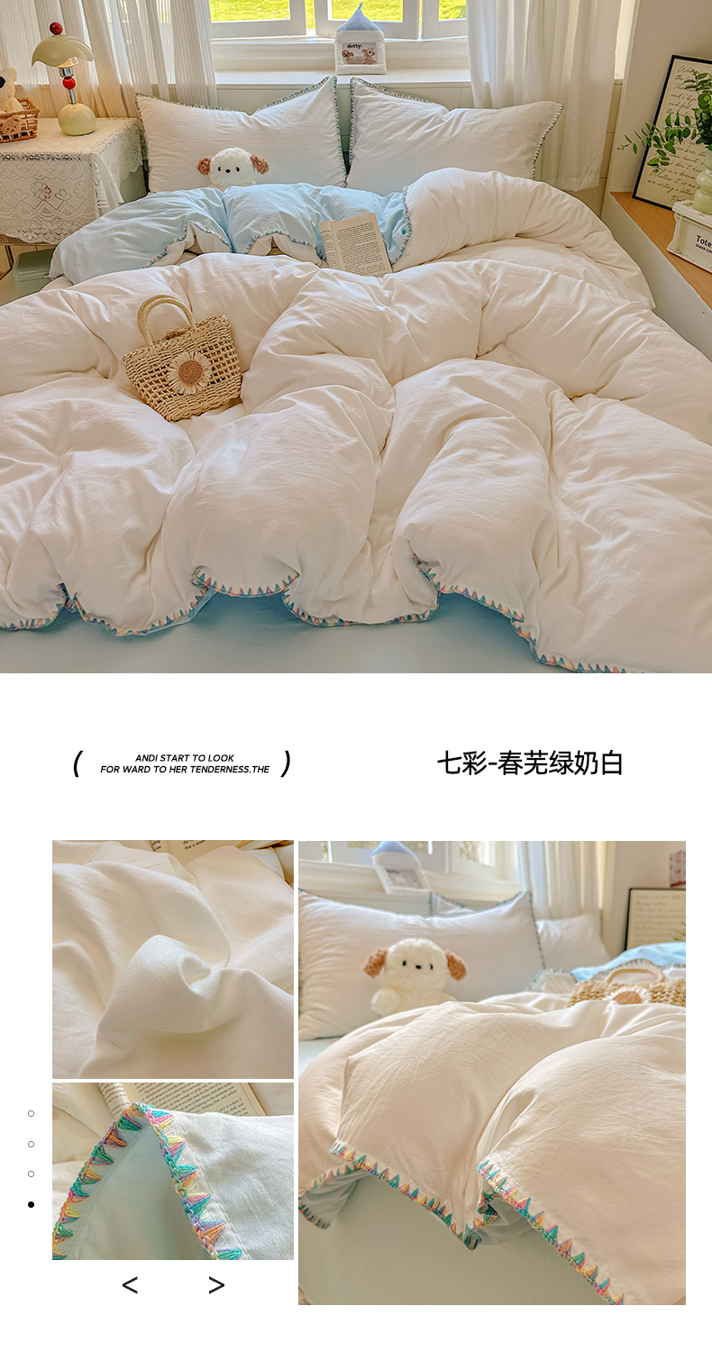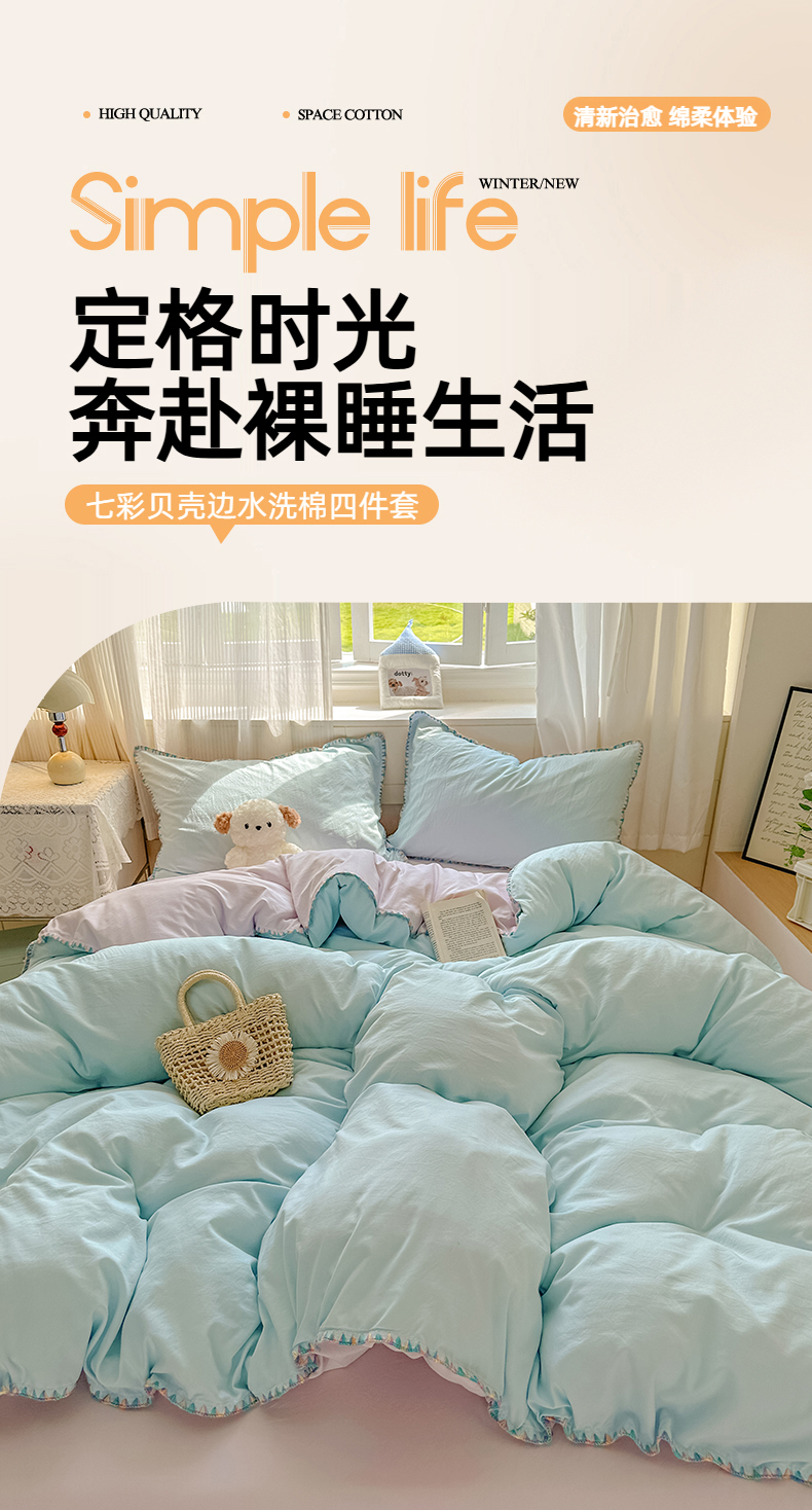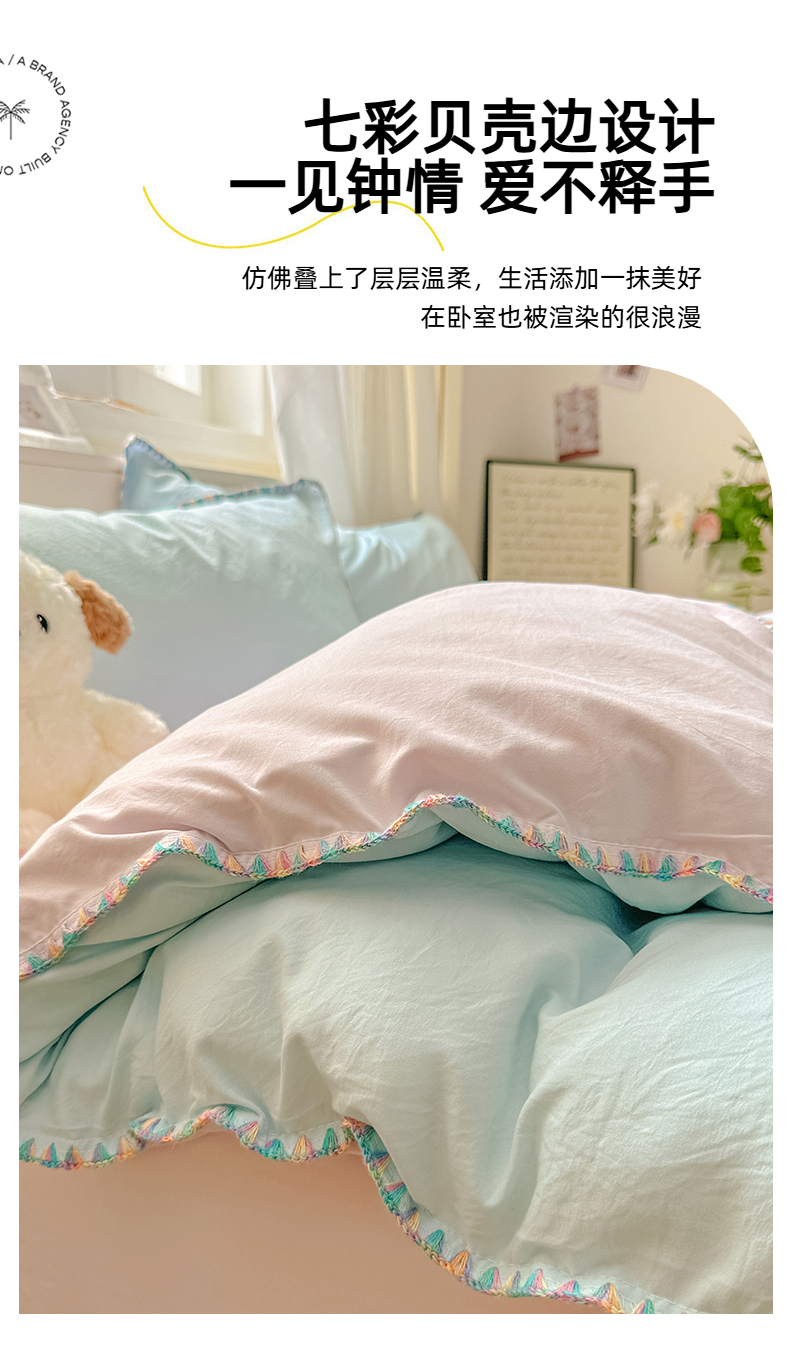 当前位置: 91家纺网 > 商品网购 > 床品套件 > 四件套 > 水洗棉四件套 > 冕悠家纺 2025新款A类七彩贝壳边水洗棉四件套 七彩-暮山紫云水蓝