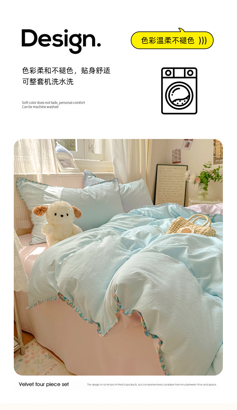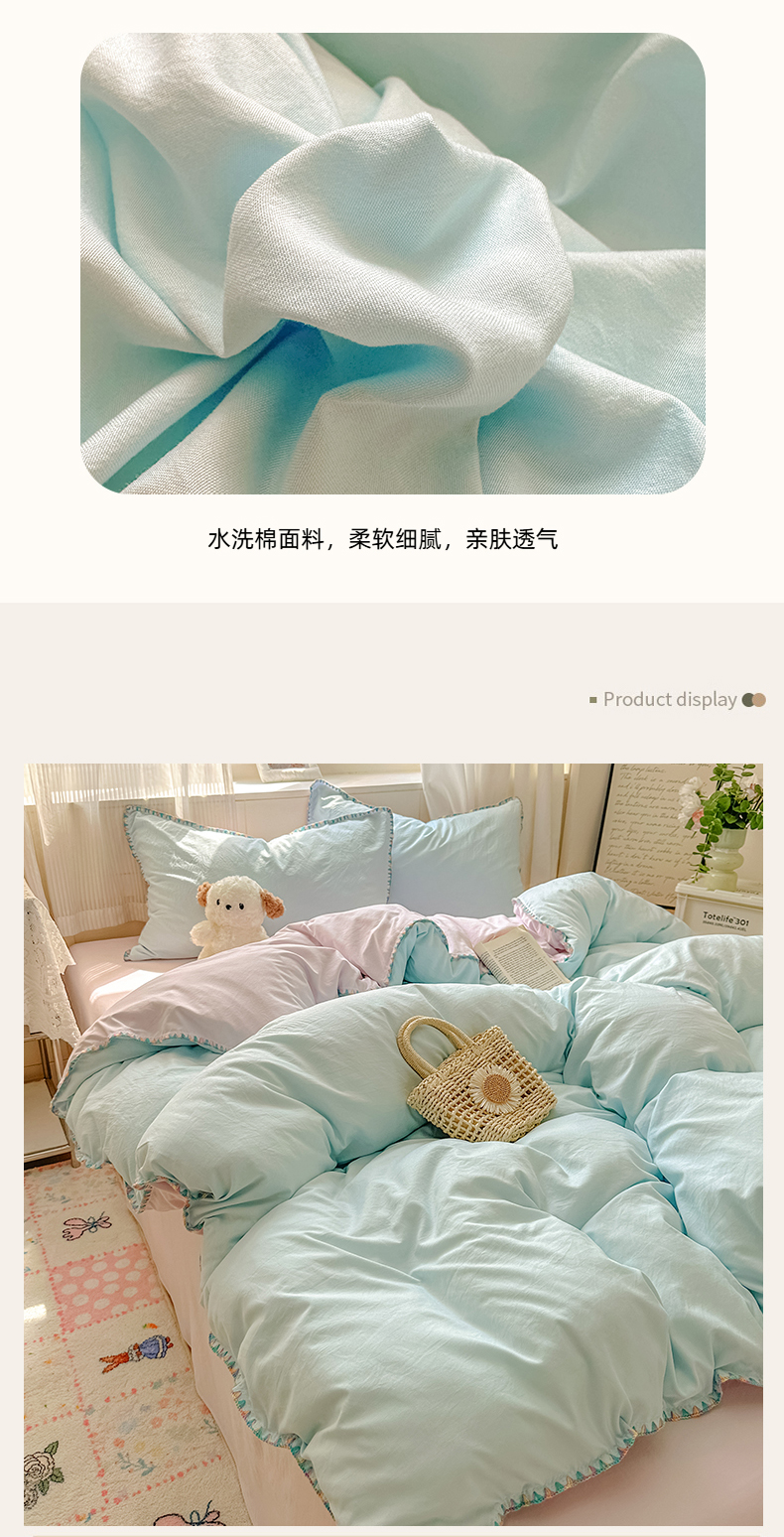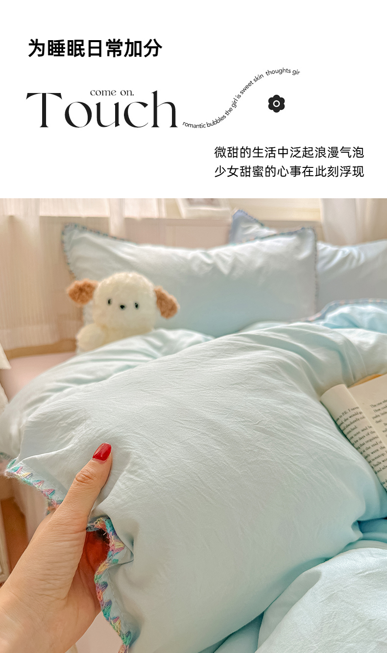 当前位置: 91家纺网 > 商品网购 > 床品套件 > 四件套 > 水洗棉四件套 > 冕悠家纺 2025新款A类七彩贝壳边水洗棉四件套 七彩-暮山紫云水蓝
