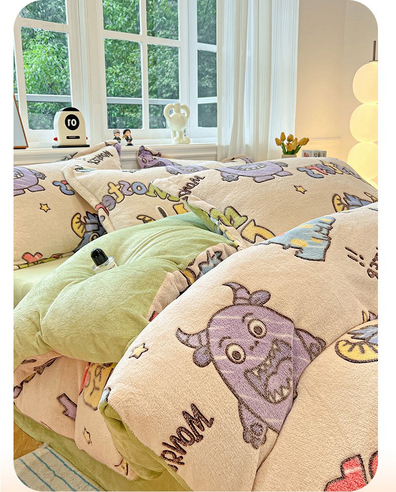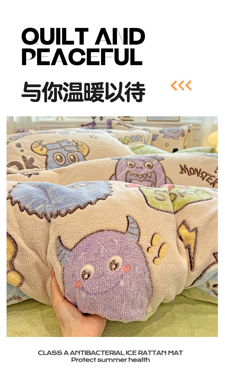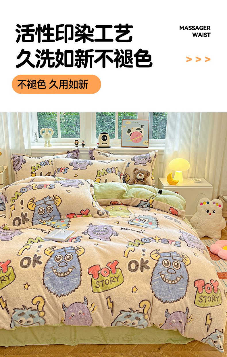 当前位置: 91家纺网 > 商品网购 > 床品套件 > 四件套 > 牛奶绒四件套 > 韩巢家纺 2025新款高克重雪花绒牛奶绒四件套 小怪兽