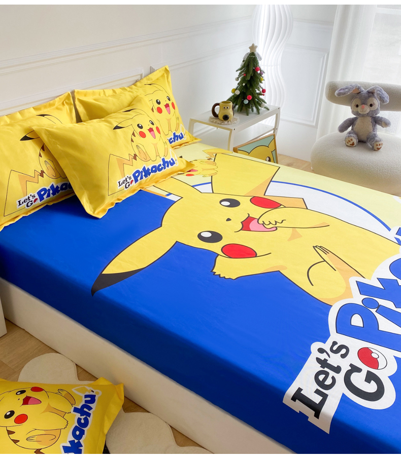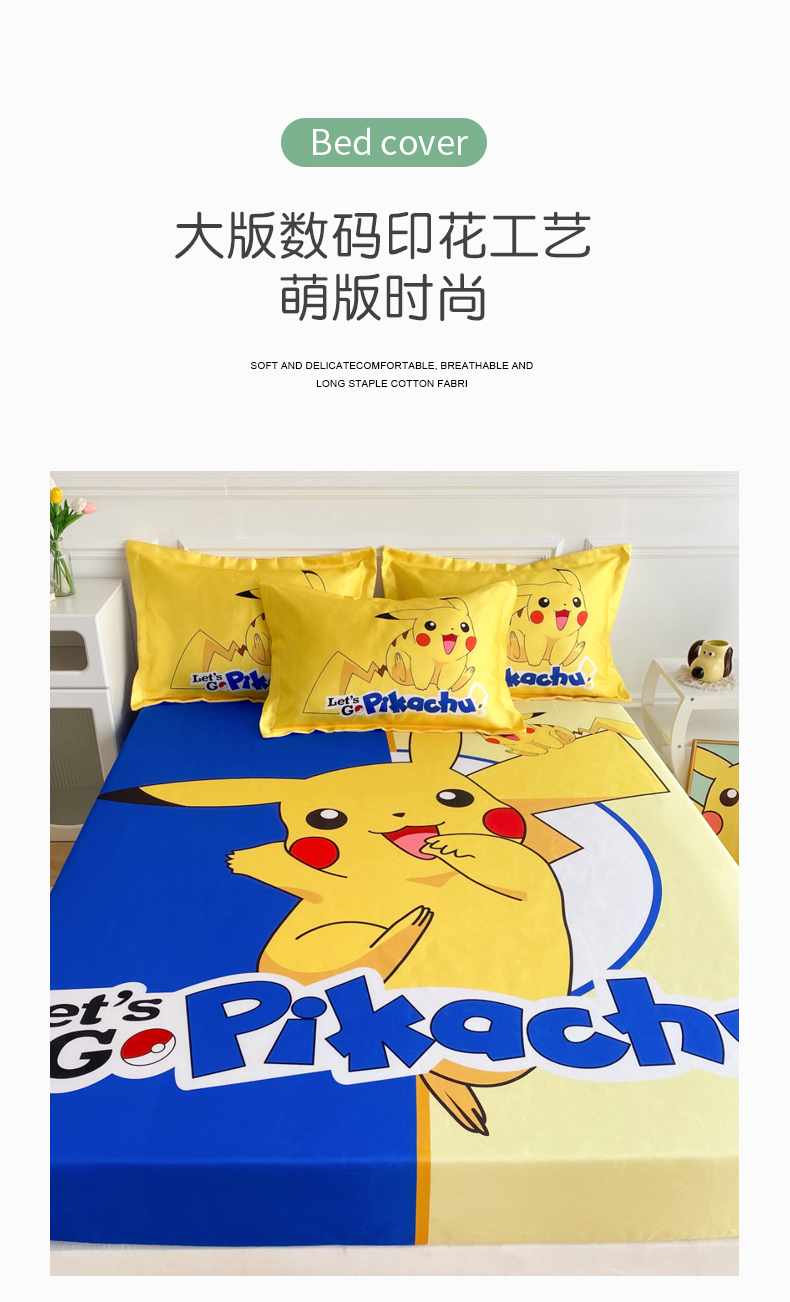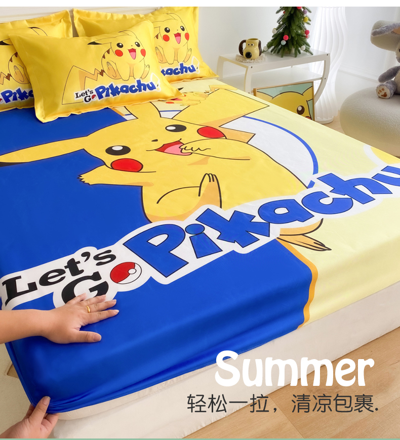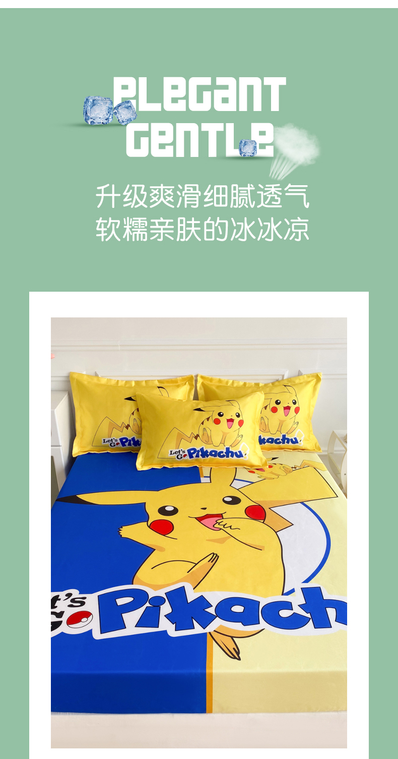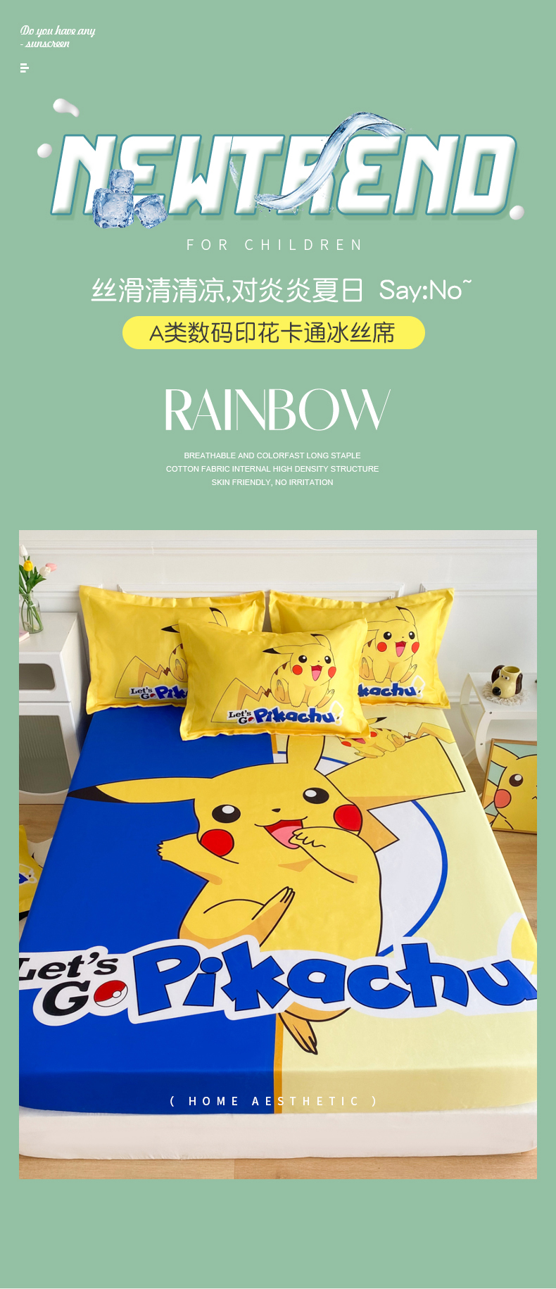 一电 2025新款跨境电商外贸夏季卡通冰丝凉席床笠可水洗学生宿舍单人空调席子 淘气皮卡丘