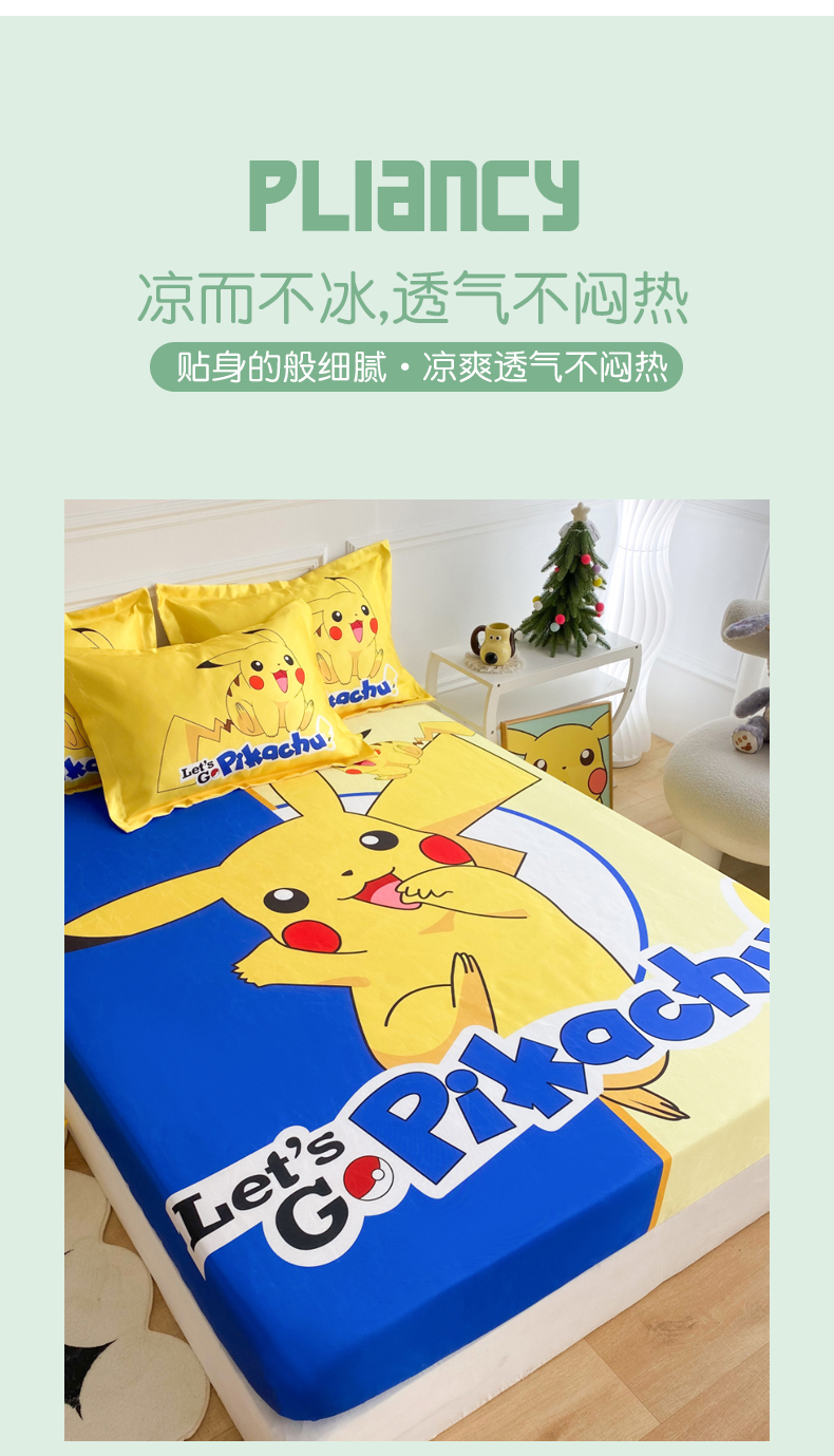 • 91家纺网 家纺一手货源 找家纺 一电 2025新款跨境电商外贸夏季卡通冰丝凉席床笠可水洗学生宿舍单人空调席子 淘气皮卡丘