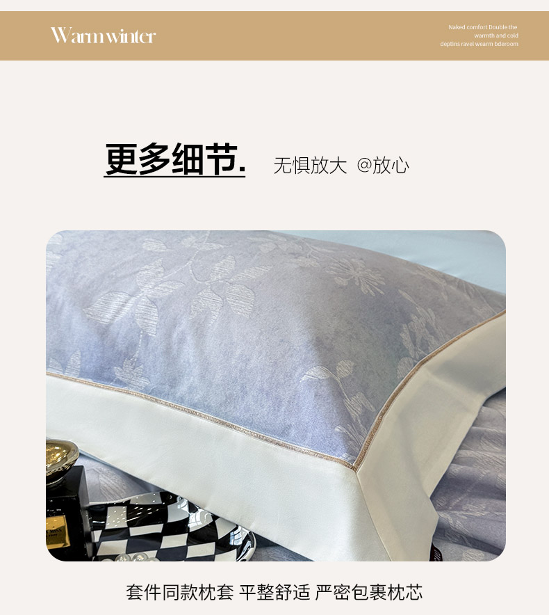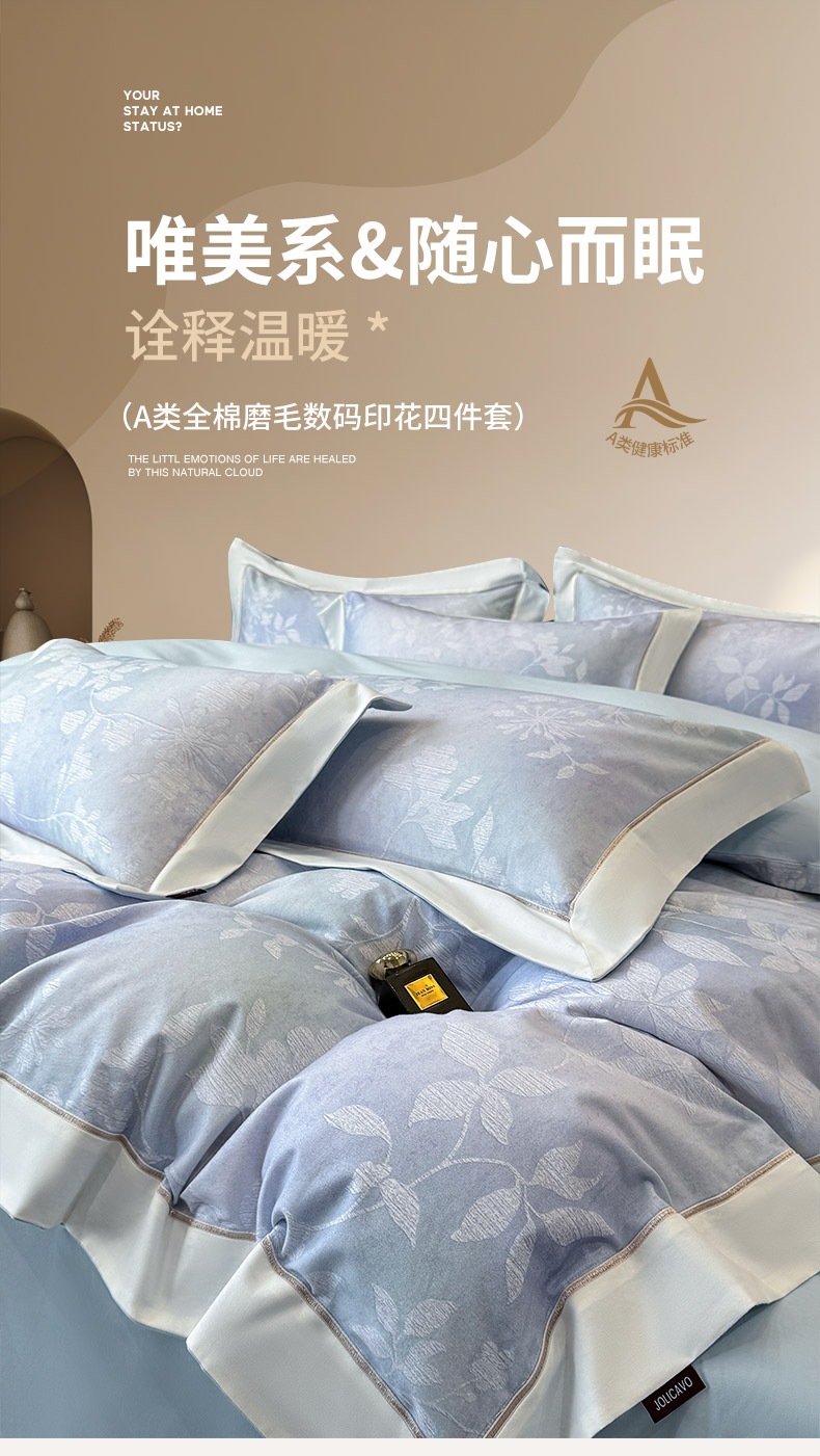 商品名称: 2025冬季热款A类加厚磨毛四件套全棉纯棉数码印花保暖被套床单高端轻奢风床笠床上用品 瑾姝-羽蓝