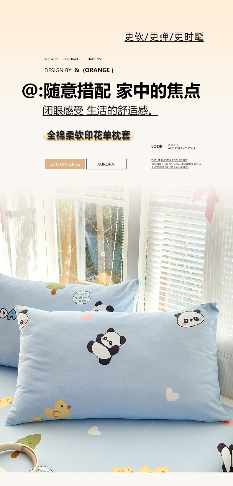 商品名称:清雅福 2025新款全棉柔软印花单枕套系列 熊猫鸭鸭乐-兰