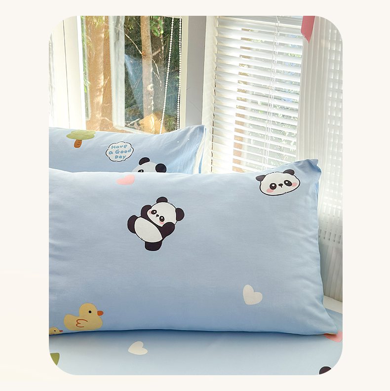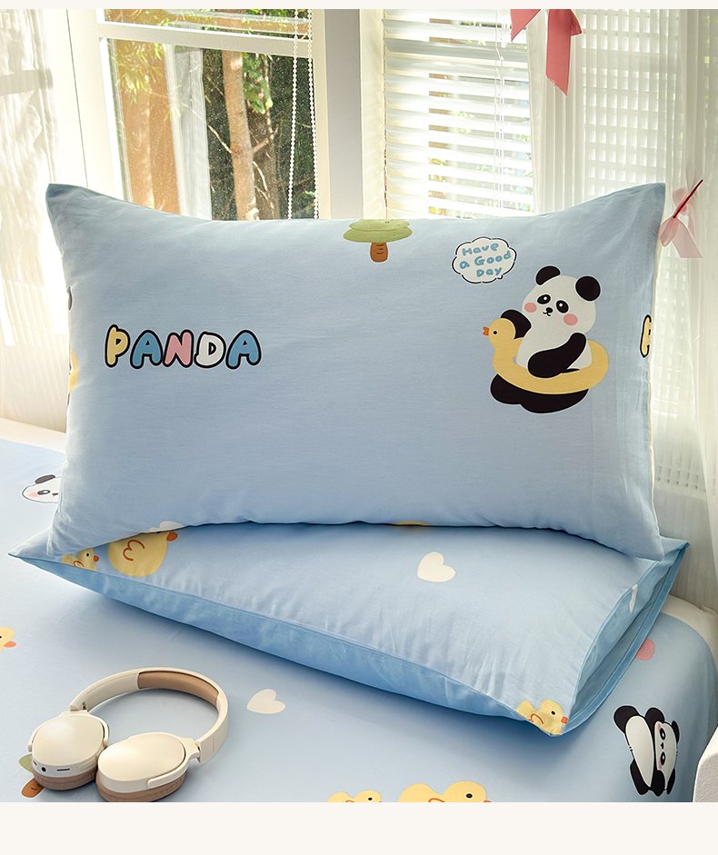 清雅福 2025新款全棉柔软印花单枕套系列 熊猫鸭鸭乐-兰