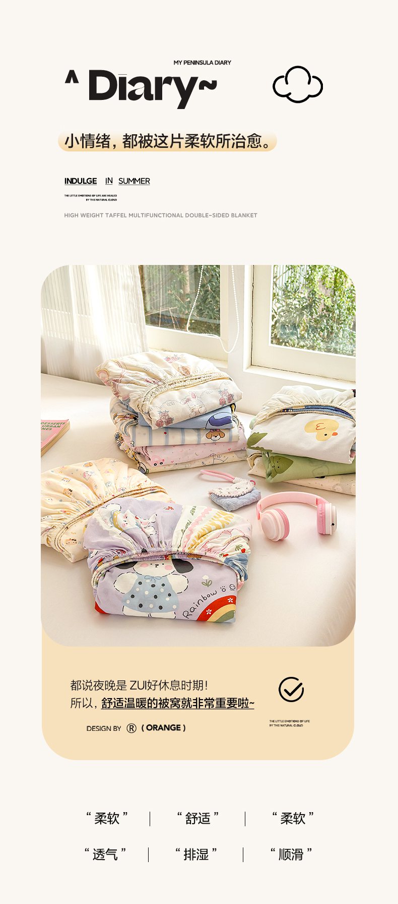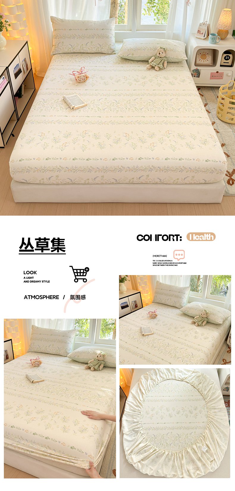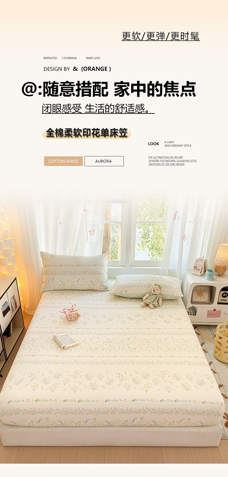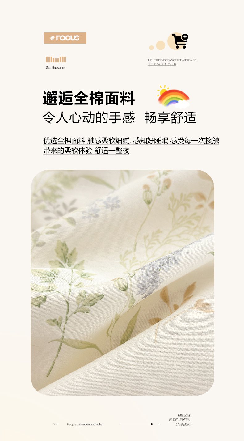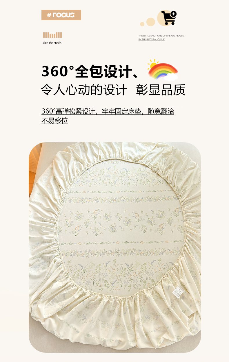 • 91家纺网 家纺一手货源 找家纺 清雅福 2025新款全棉柔软印花系列单床笠 奶油阿布-兰