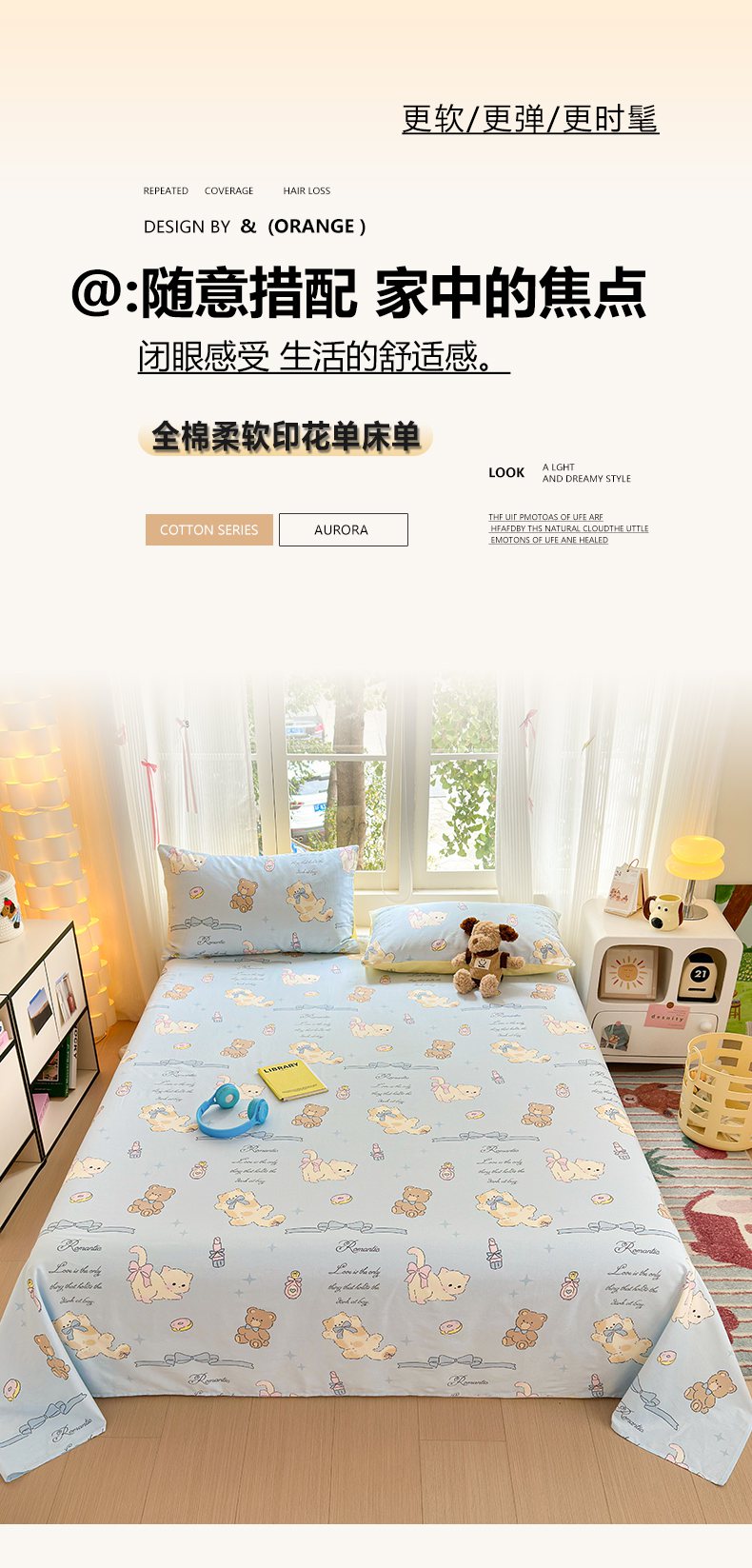 • 91家纺网 家纺一手货源 找家纺 清雅福 2025新款全棉柔软印花系列单床单 奶油阿布-蓝