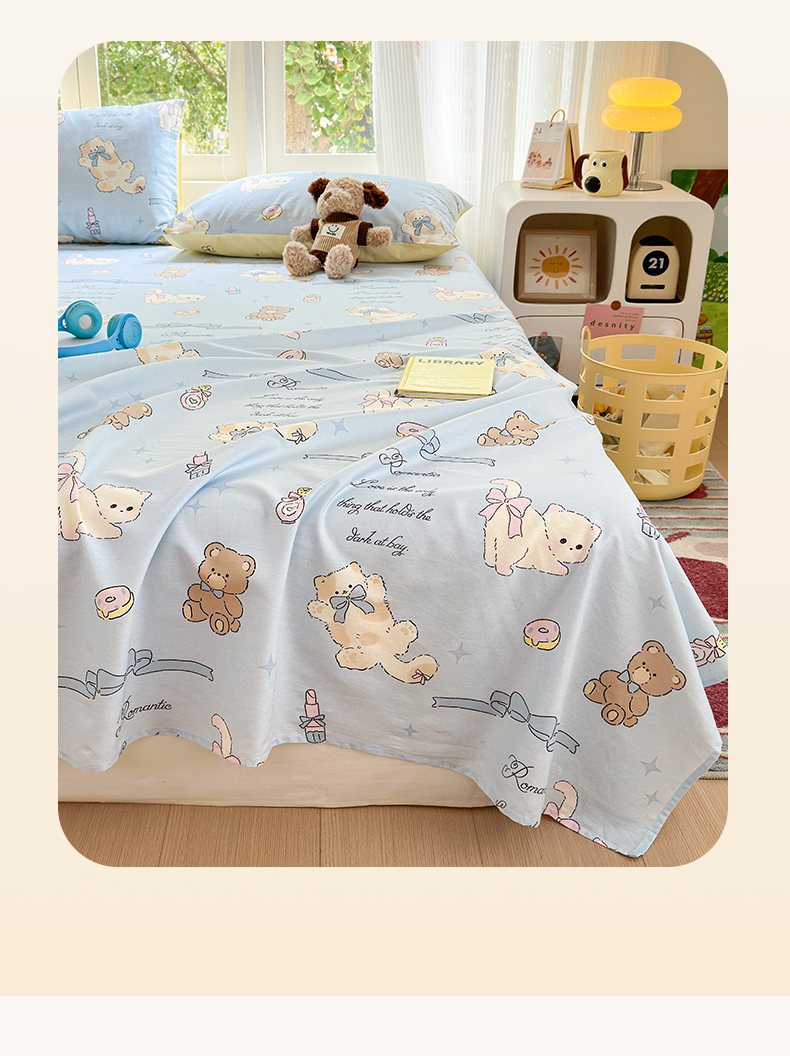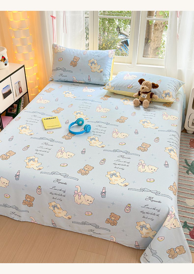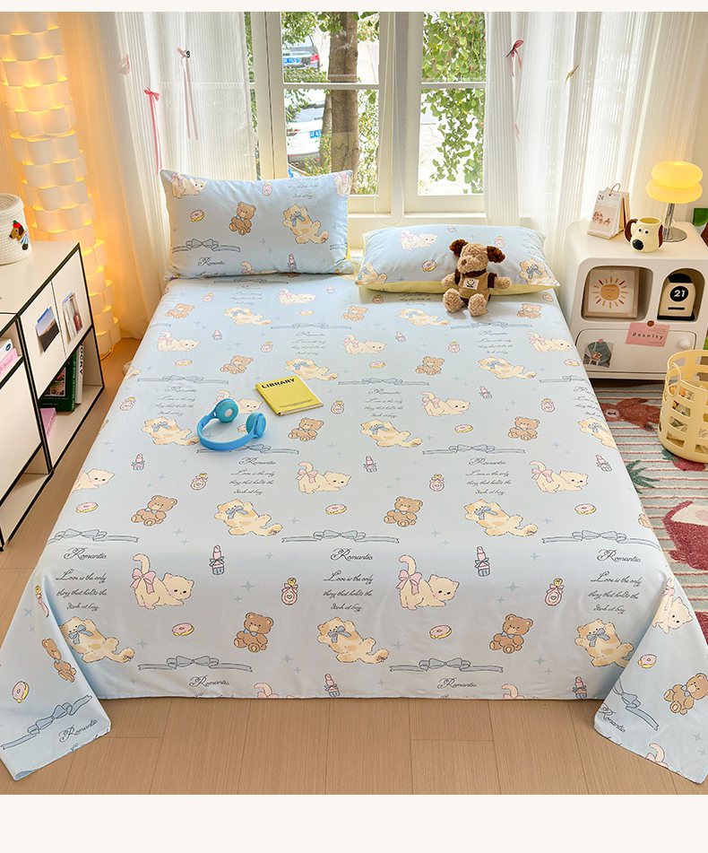 清雅福 2025新款全棉柔软印花系列单床单 奶油阿布-蓝