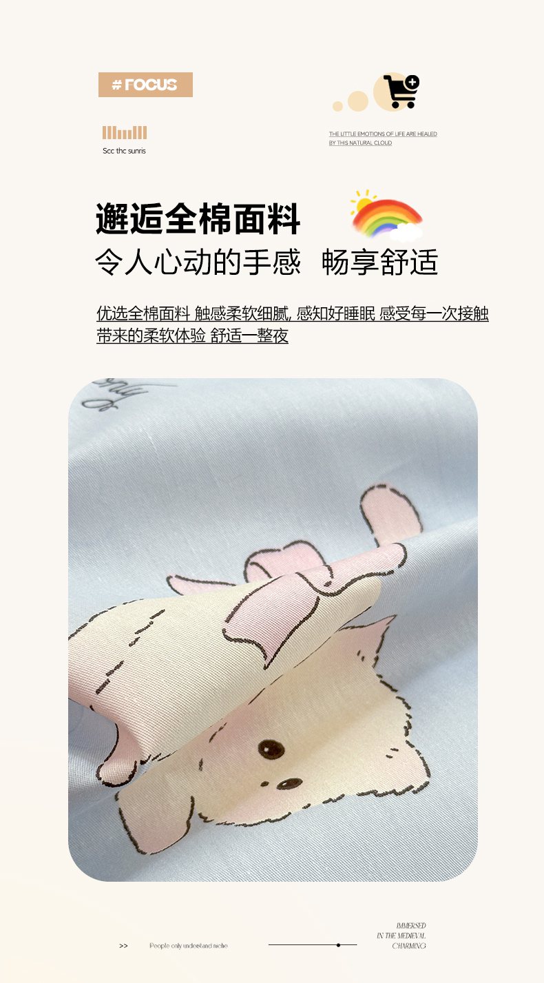 • 91家纺网 家纺一手货源 找家纺 (总)清雅福 2026春夏新款INS小清新40支全棉13372单被套第一批,棒棒糖女孩,春之约定,点点小狗,动物聚会,豆丁小熊,粉心狗,富贵狗,果子象,含羞草,假日小狗