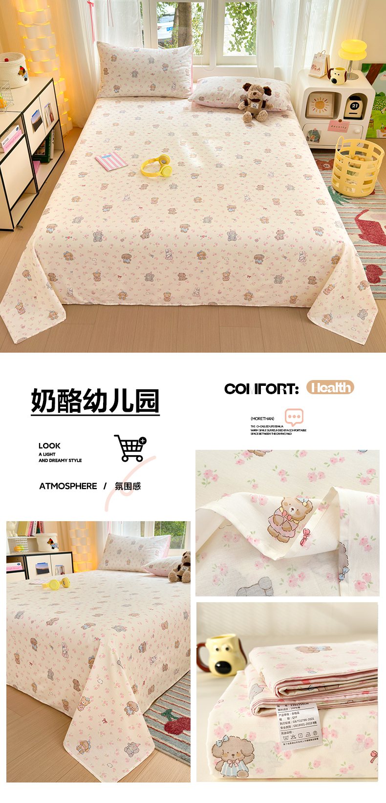 (总)清雅福 2026春夏新款INS小清新40支全棉13372单被套第一批,棒棒糖女孩,春之约定,点点小狗,动物聚会,豆丁小熊,粉心狗,富贵狗,果子象,含羞草,假日小狗