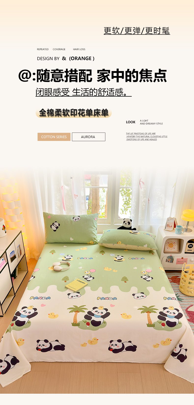 • 91家纺网 家纺一手货源 找家纺 清雅福 2025新款全棉柔软印花系列单床单 熊猫鸭鸭乐-绿