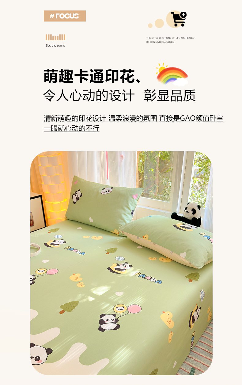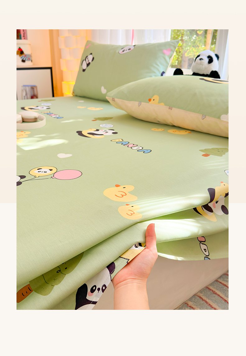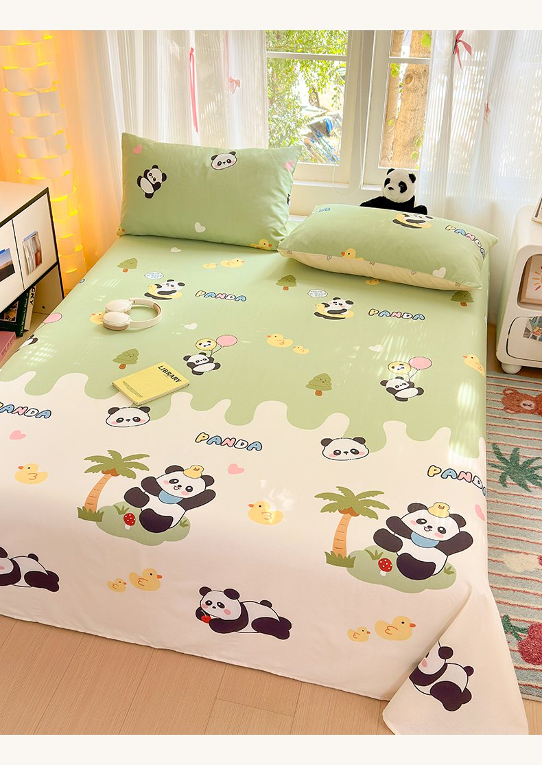 清雅福 2025新款全棉柔软印花系列单床单 熊猫鸭鸭乐-绿