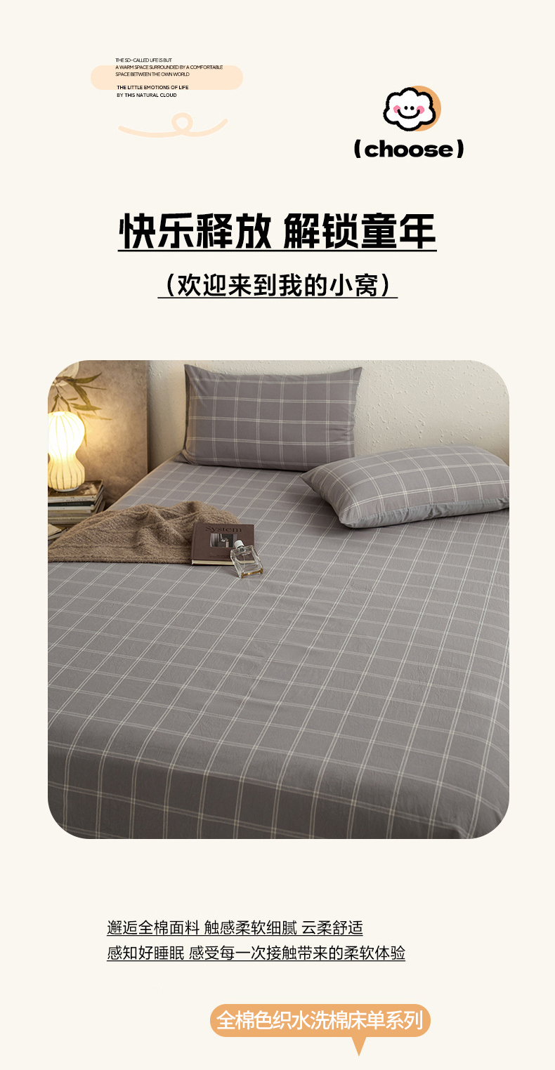 (总)启程家纺 2026新款全棉纯棉色织水洗棉单床单床单单件单品床单,爱格-粉,爱格-蓝,缤纷格-灰,初遇,简格兰,大布丁-粉,大布丁-灰,大布丁绿,米亚兰,土耳其,威特浅蓝,麦田-蓝,麦田-绿,秋田5号,秋田-蓝,松墨