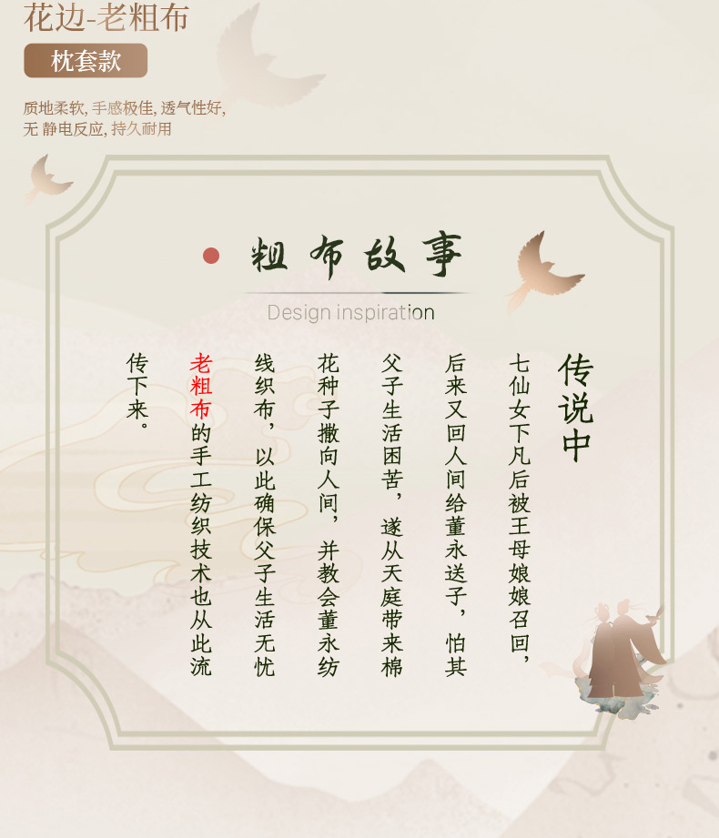 商品名称:(总)春皖家纺 2026春夏新品老粗布花边款单枕套 枕套单件