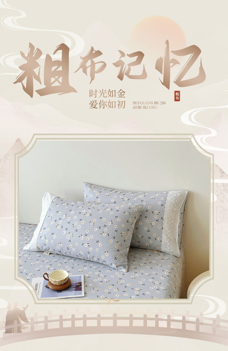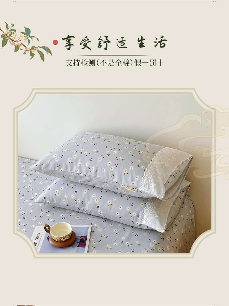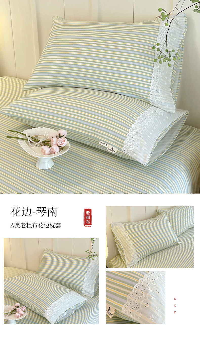 (总)春皖家纺 2026春夏新品老粗布花边款单枕套 枕套单件