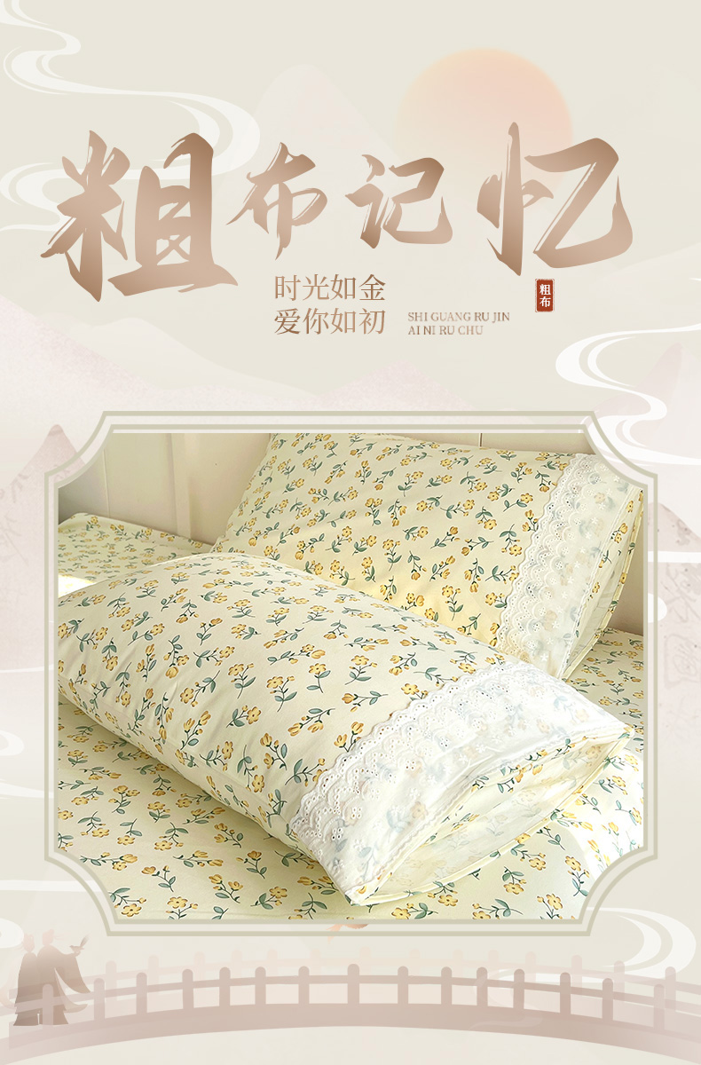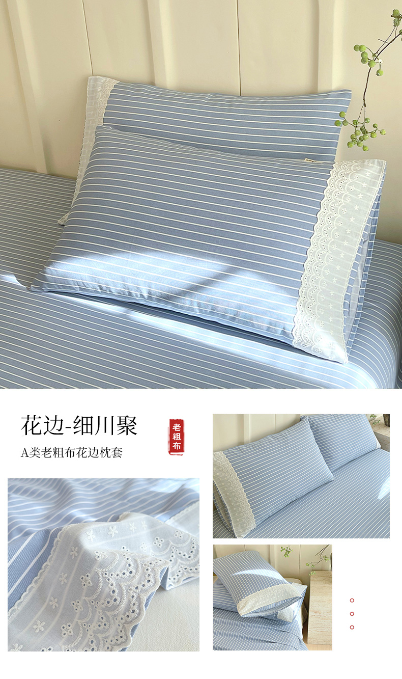 春皖家纺 2026春夏新品老粗布花边款单枕套 枕套单件 花边-伊兰