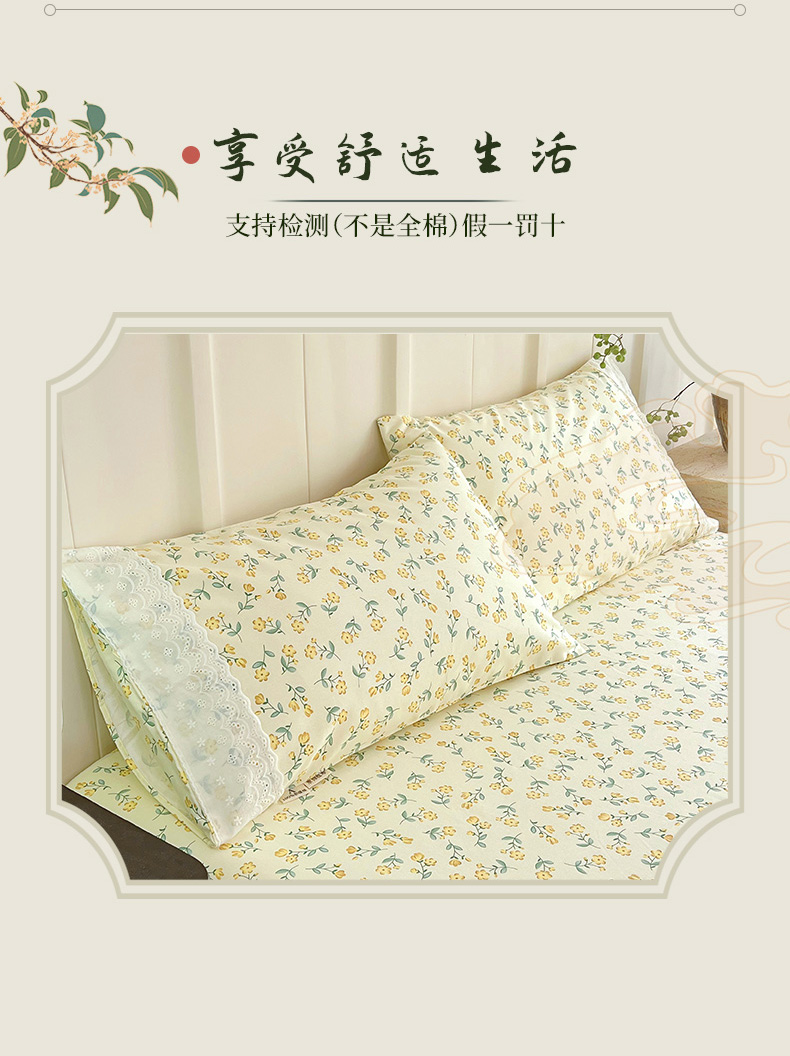 商品名称:春皖家纺 2026春夏新品老粗布花边款单枕套 枕套单件 花边-伊兰