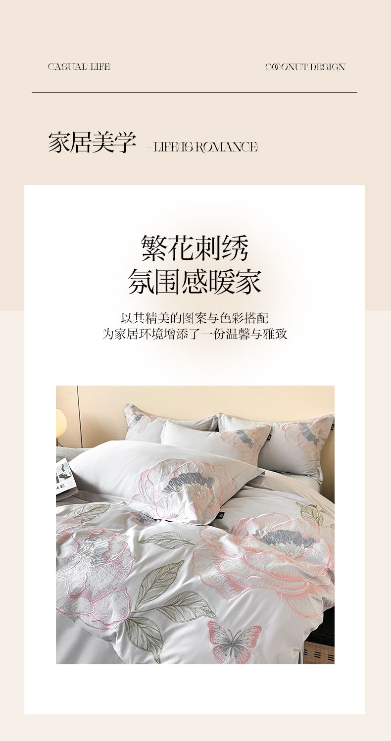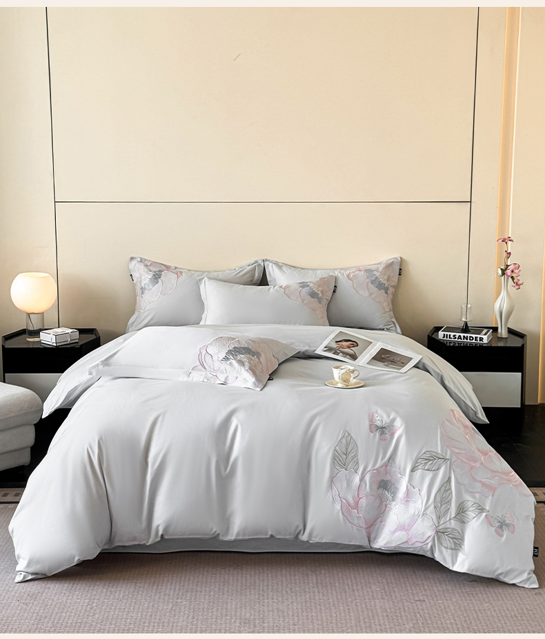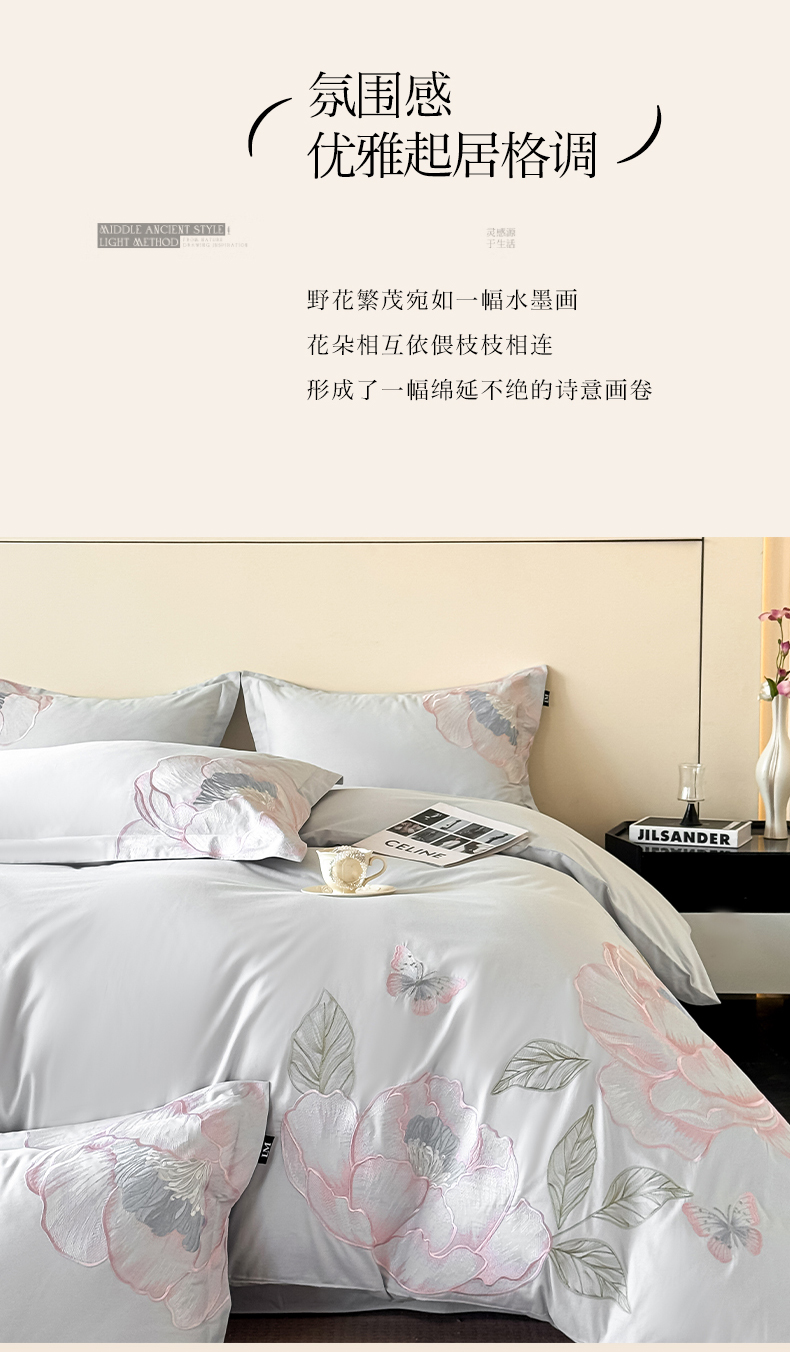 (总)乐美家纺 2026新款春夏新品全棉刺绣悦璟系列四件套,悦璟(丁香紫),悦璟(微微粉)
