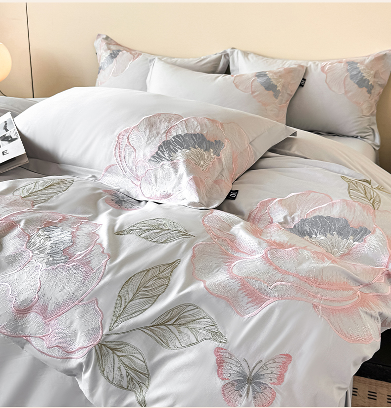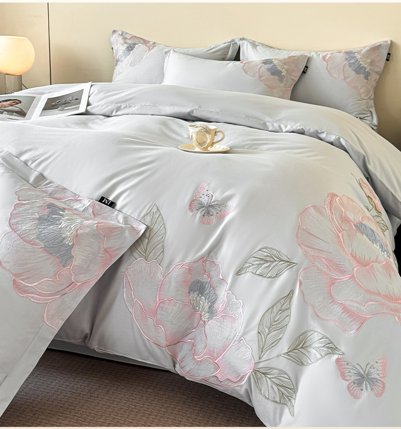 (总)乐美家纺 2026新款春夏新品全棉大阪刺绣花熙系列,花熙(冰粉),花熙(灰兰)