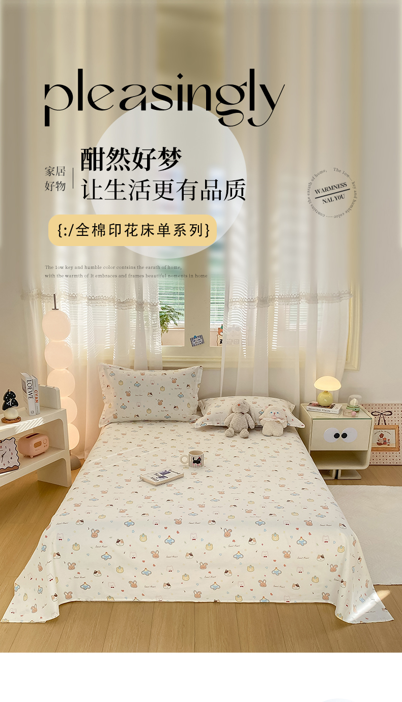 • 91家纺网 家纺一手货源 找家纺 花梦欣 2026新款全棉印花单品系列-单床单 萌宠国度