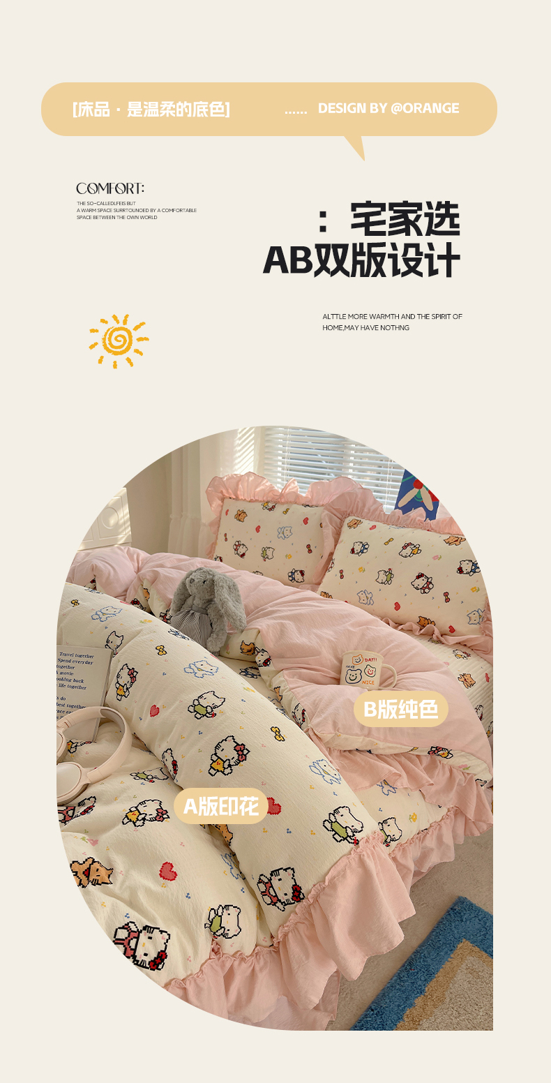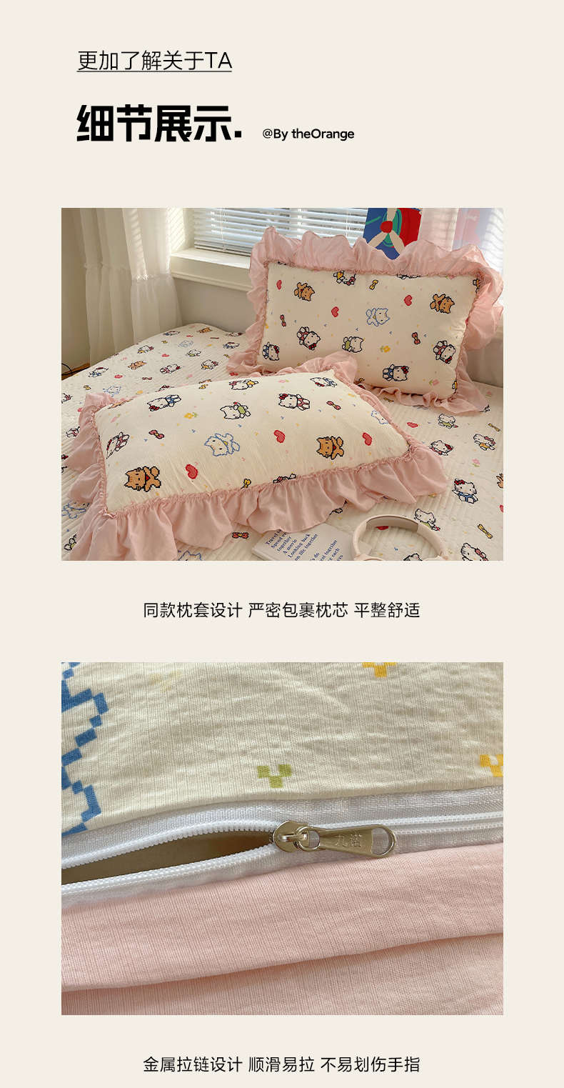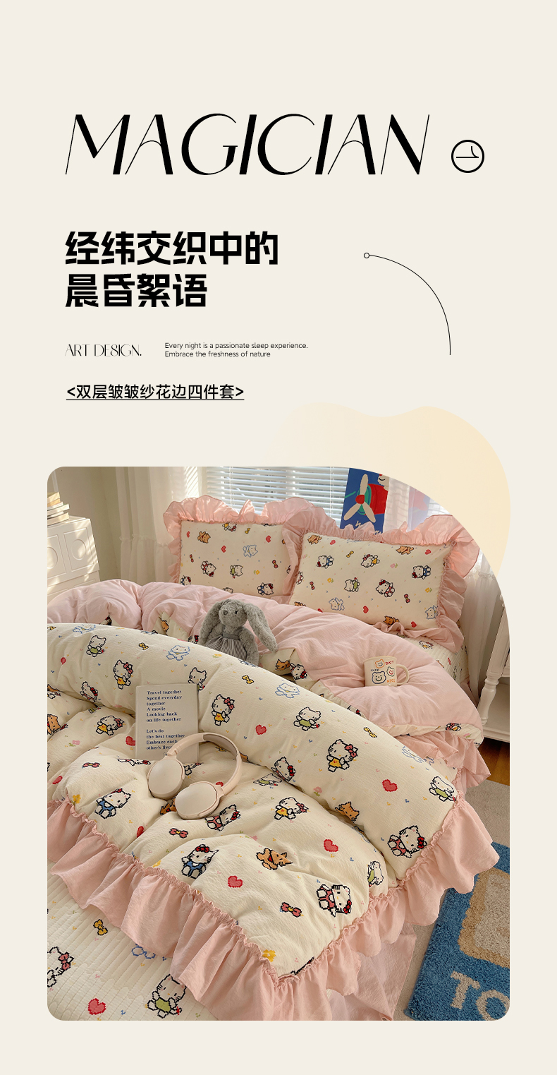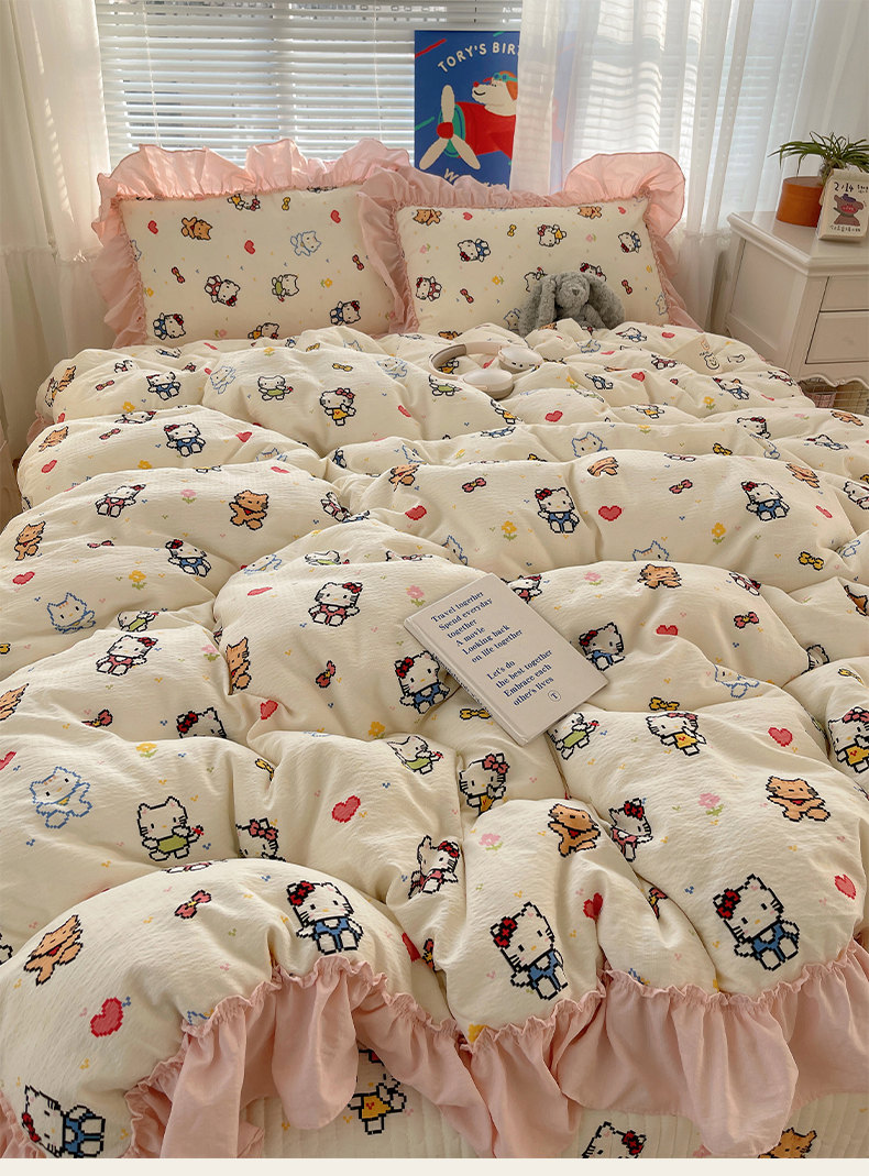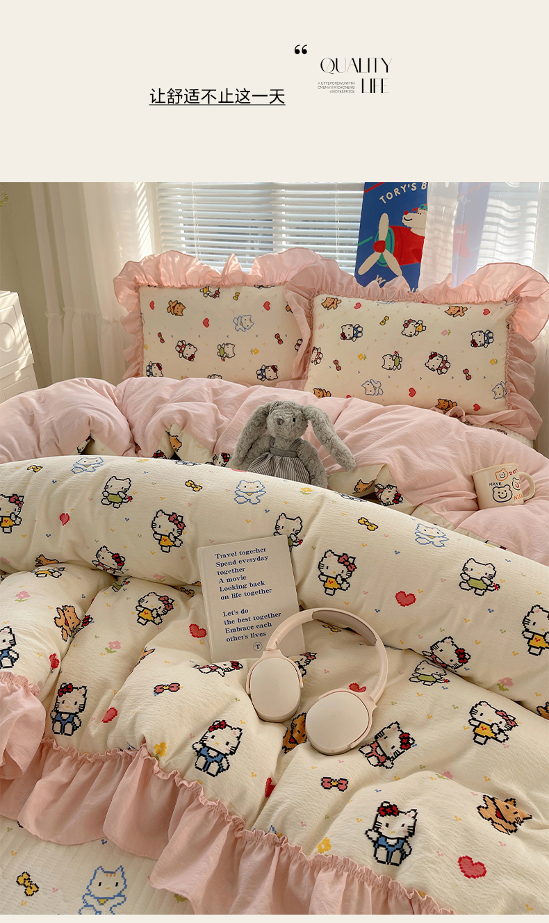 商品名称:韩都家居 2026新款云感双层纱床盖四件套 爱丝KT猫