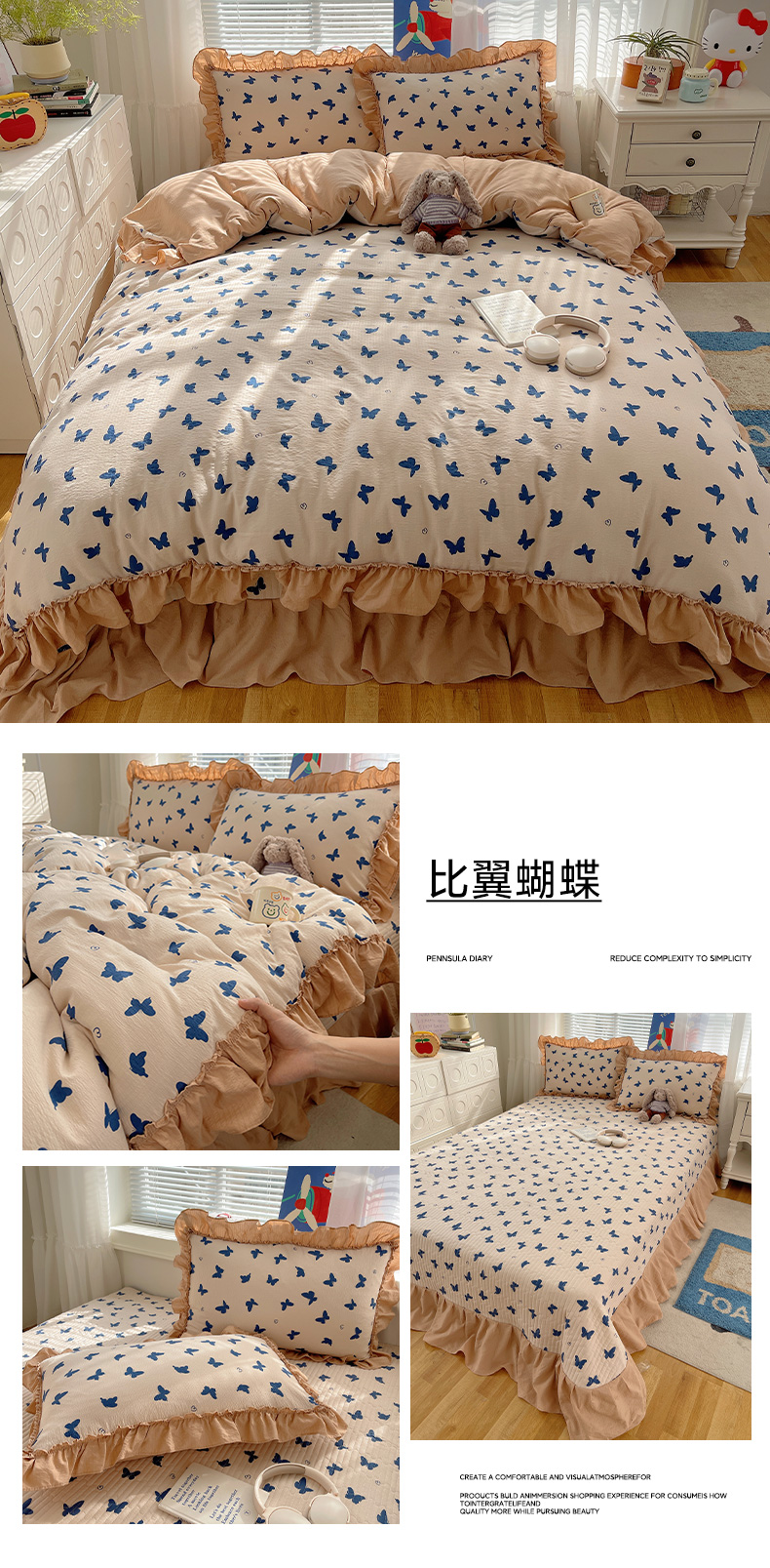 (总)韩都家居 2026新款韩系大花边系列古棉四件套,蝴蝶,斑珈狗,蓝海,莓果,星狗,雨沫,紫苏