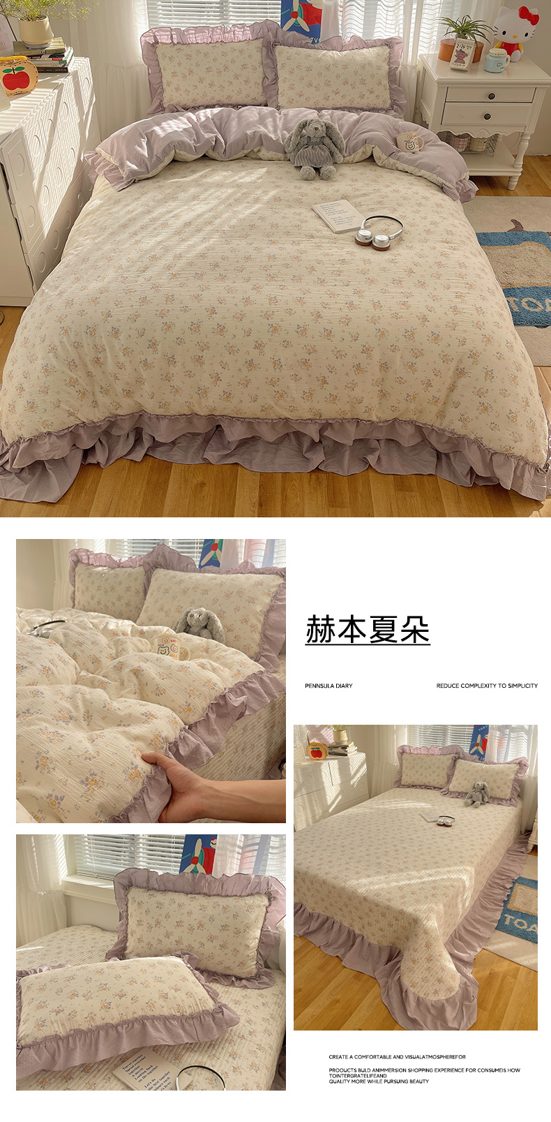 (总)韩都家居 2026春夏新款古法仿棉蕾丝花边四件套,粉糯花眠,花边南瓜,蓝调小顽家,蕾丝花漾,奶杏蔷薇,青提碎花,雾里蔷薇,芋泥碎花