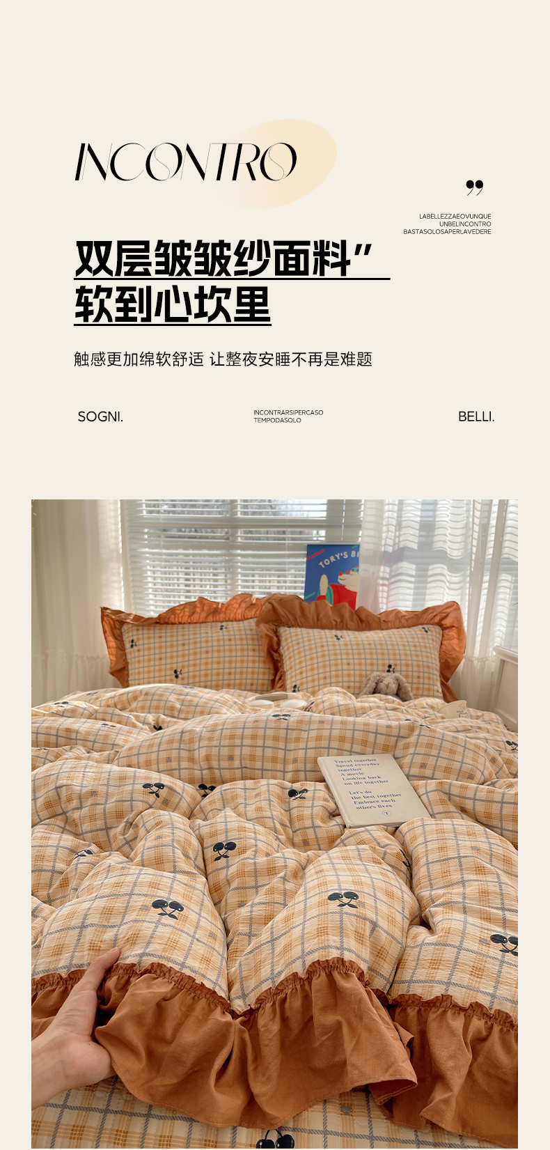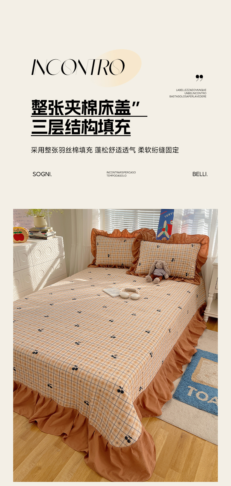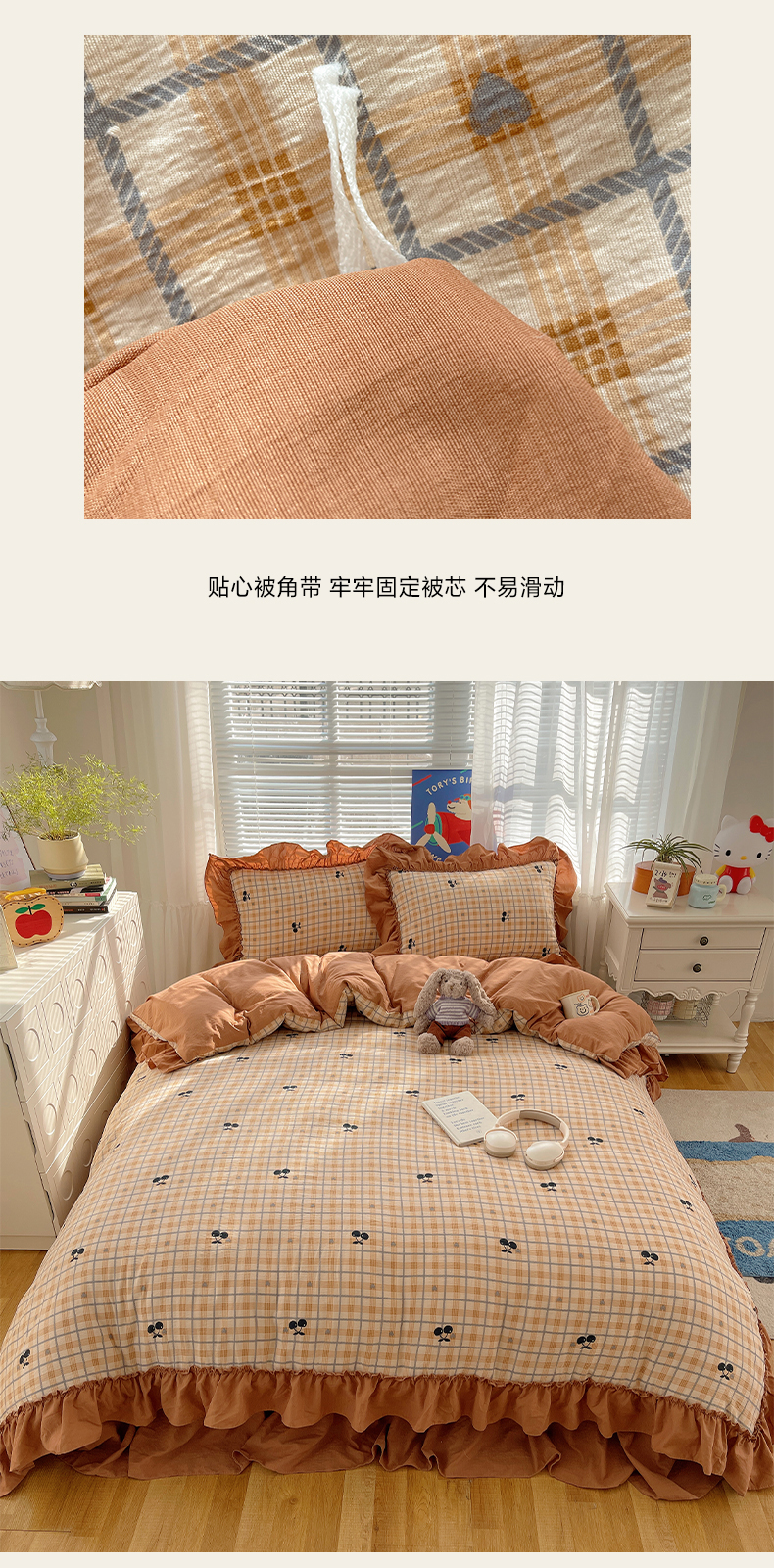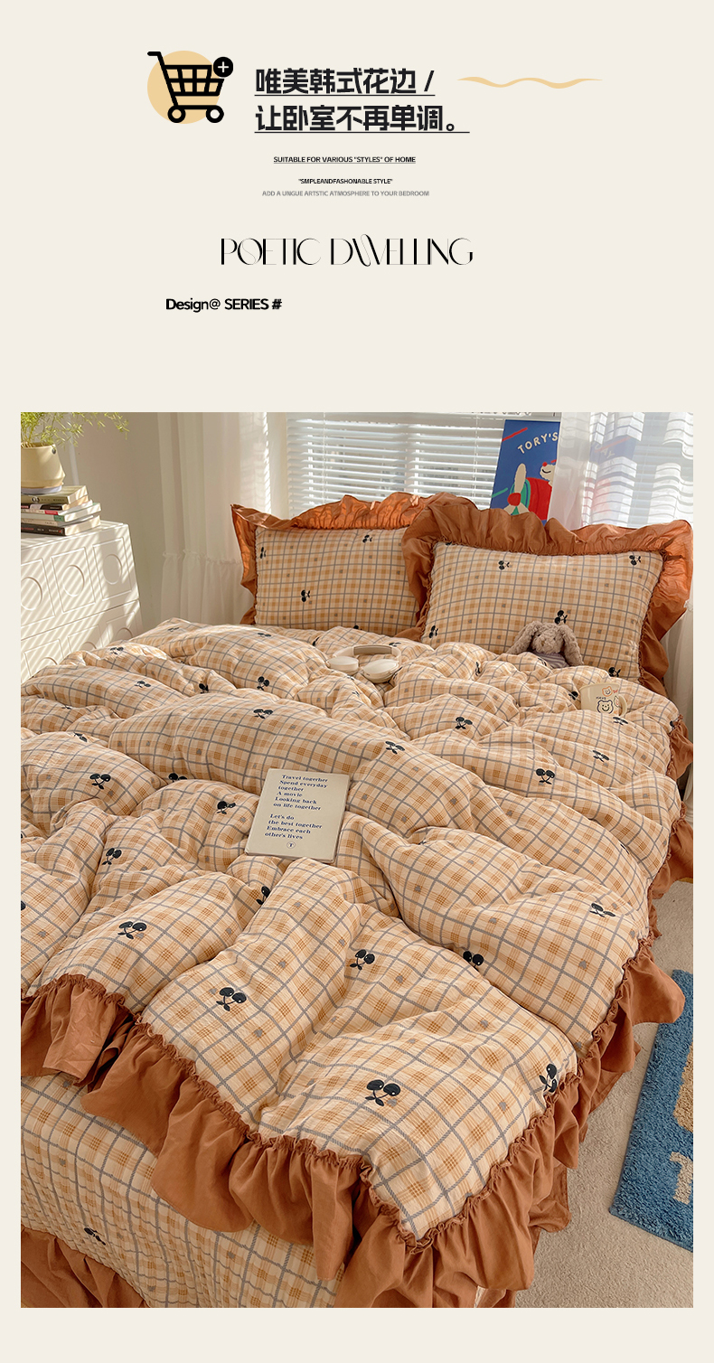 商品名称:韩都家居 2026新款云感双层纱床盖四件套 焦糖樱桃
