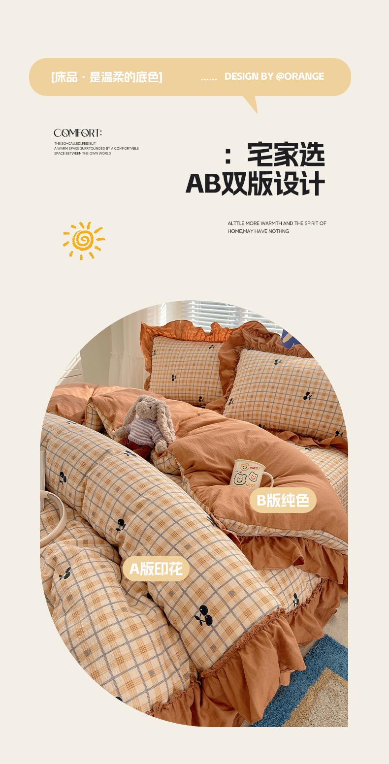 (总)韩都家居 2023新款韩版工艺款床裙款雪梨系列四件套,雪莉-桔,雪莉-浅玉,雪莉-星空兰,雪莉-芝士奶油
