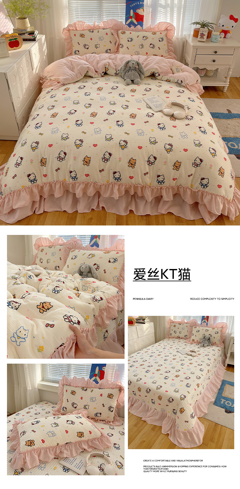 (总)韩都家居 2026新款云感双层纱床盖四件套,爱丝KT猫,比翼蝴蝶,春满园,蝶舞,多宝南瓜,格言红,赫本春色,赫本咖,赫本夏朵,花季,焦糖樱桃,梦幻乐园,叶语格