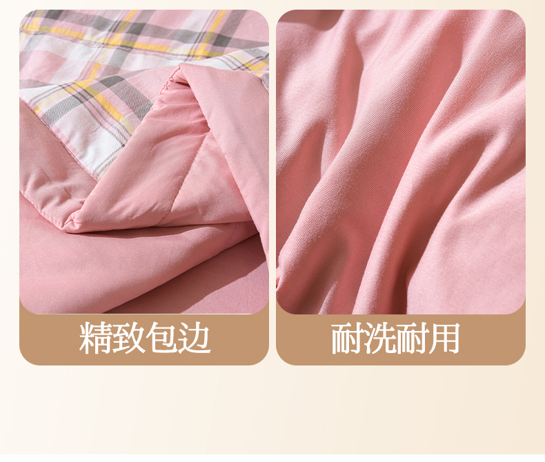 商品名称:绒宴家纺 2026新款水洗棉新疆棉花夏被格子款夏凉被空调被 简兮-粉