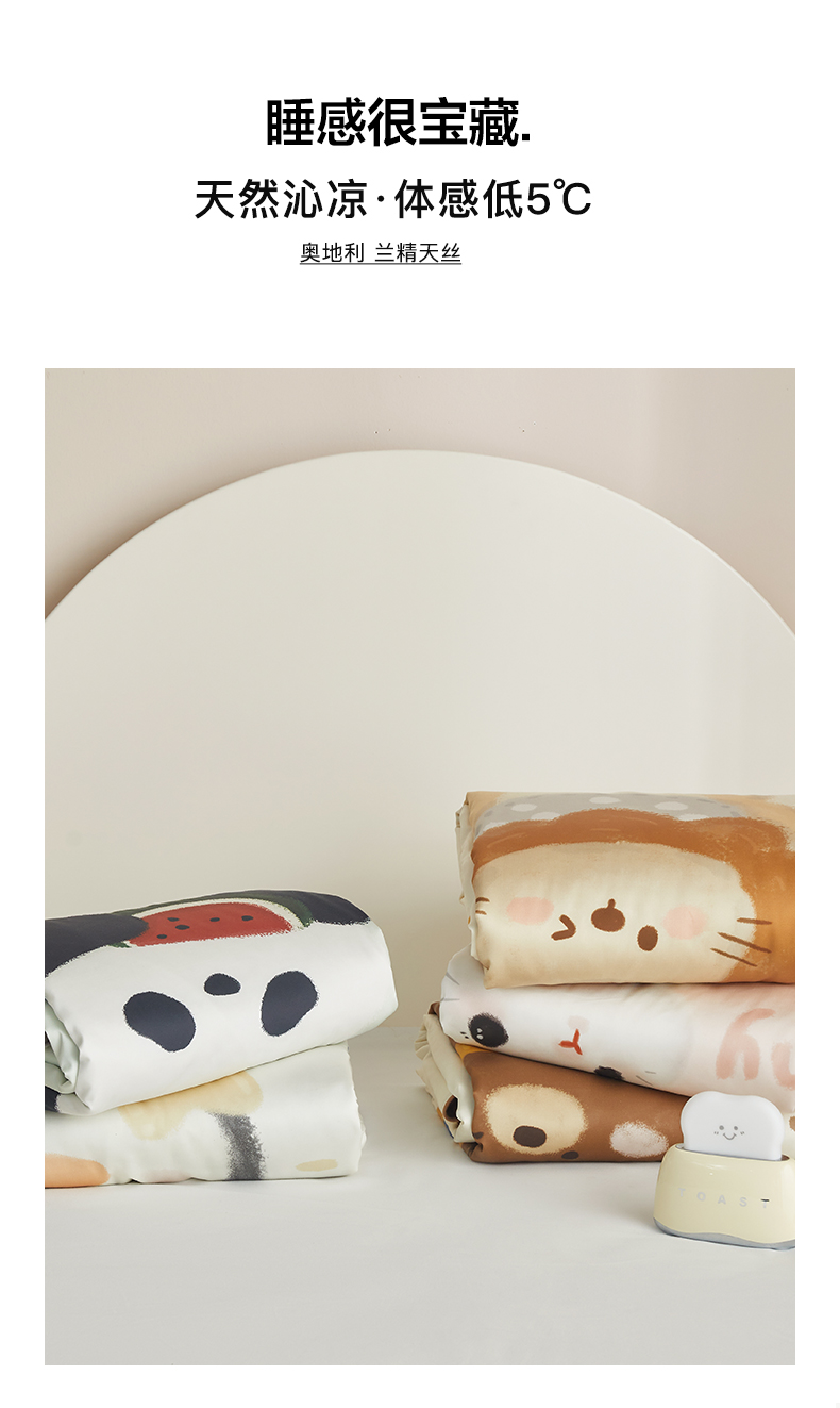 (总)荷马之梦 2026新款60s兰精天丝原创数码印花山茶花桑蚕丝儿童夏被,馋嘴小狮,番茄兔兔,糯糯小熊,西瓜熊猫,星星企鹅,组合图