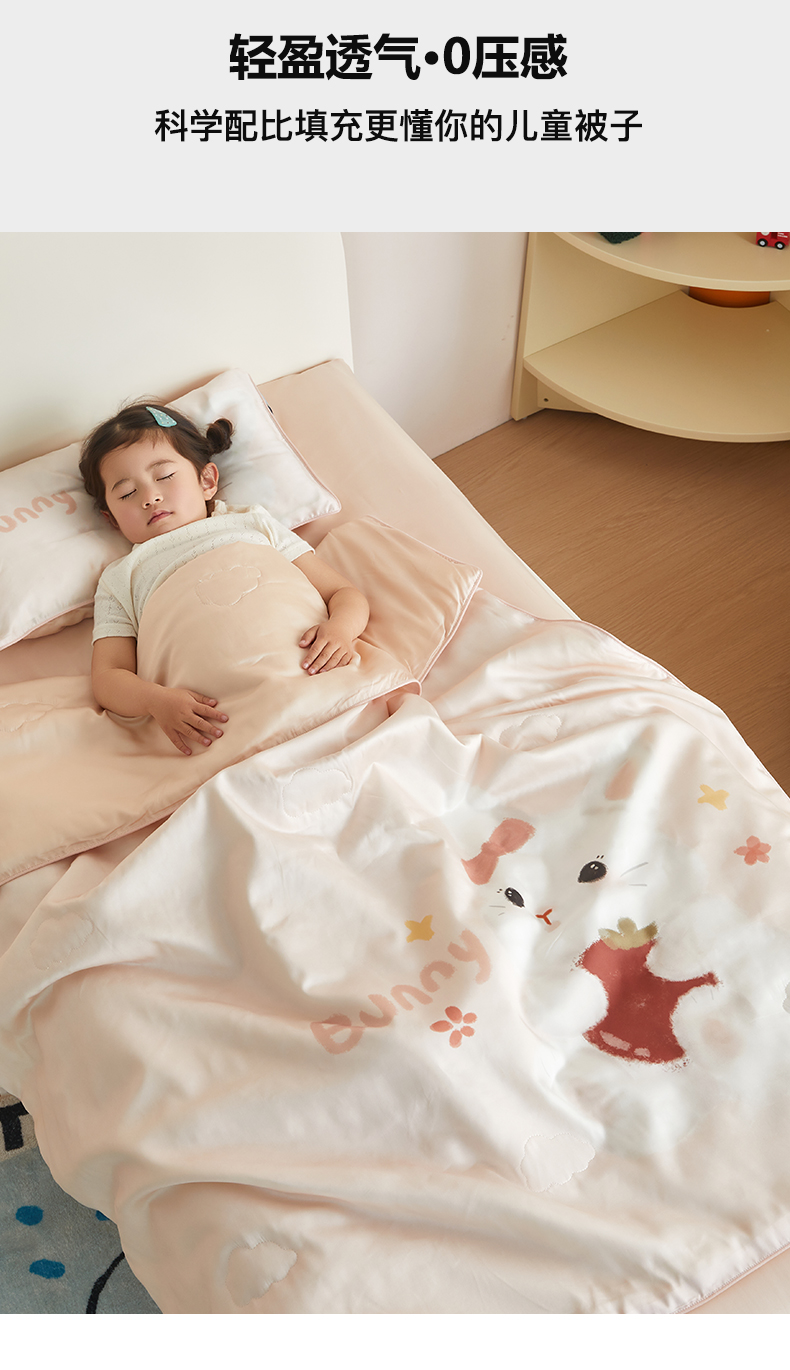 商品名称:荷马之梦 2026新款60s兰精天丝原创数码印花山茶花桑蚕丝儿童夏被 番茄兔兔