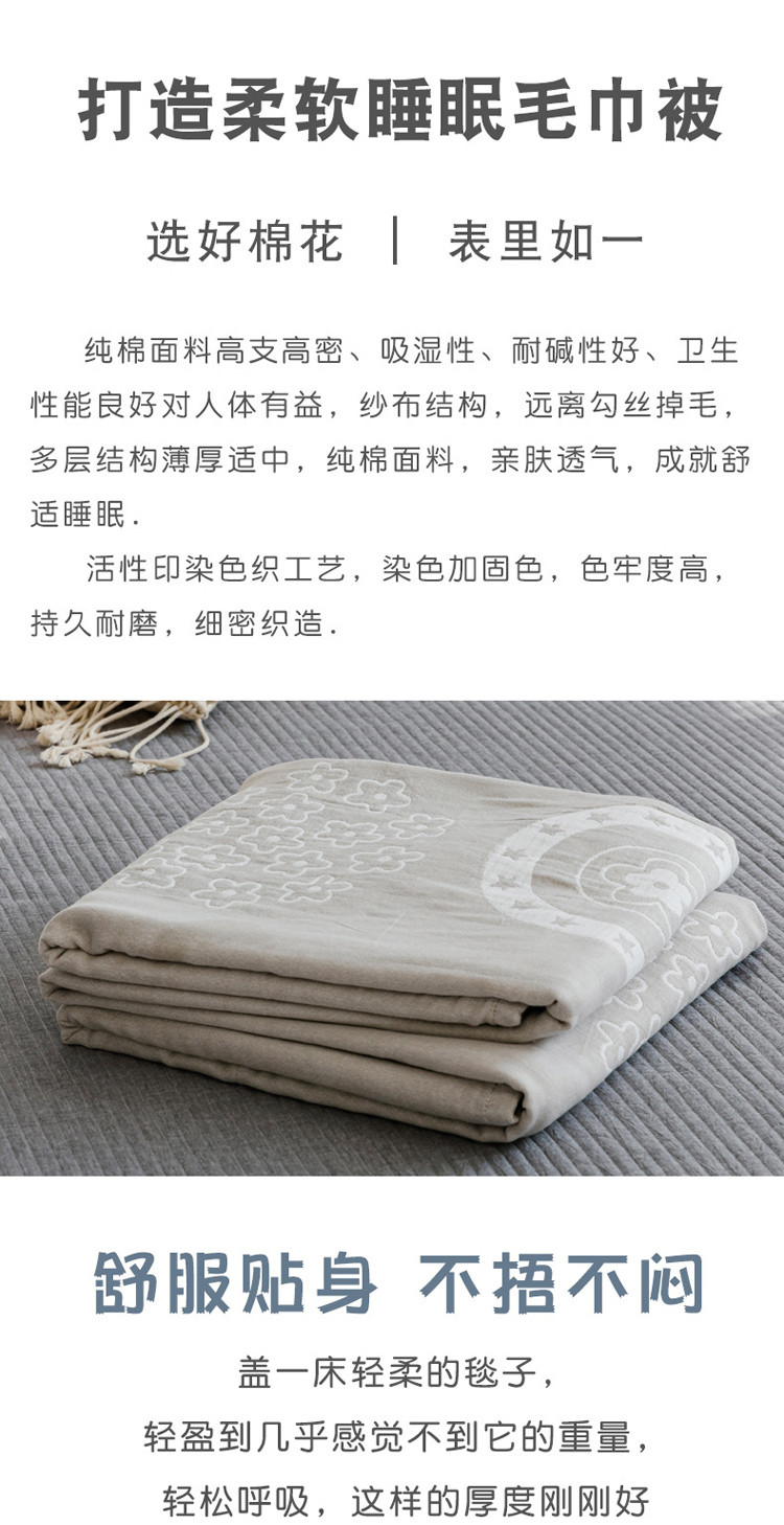 商品名称:朴尔 2020年新款加厚三层水洗棉全棉纱布毛巾被 星星点点-浅灰