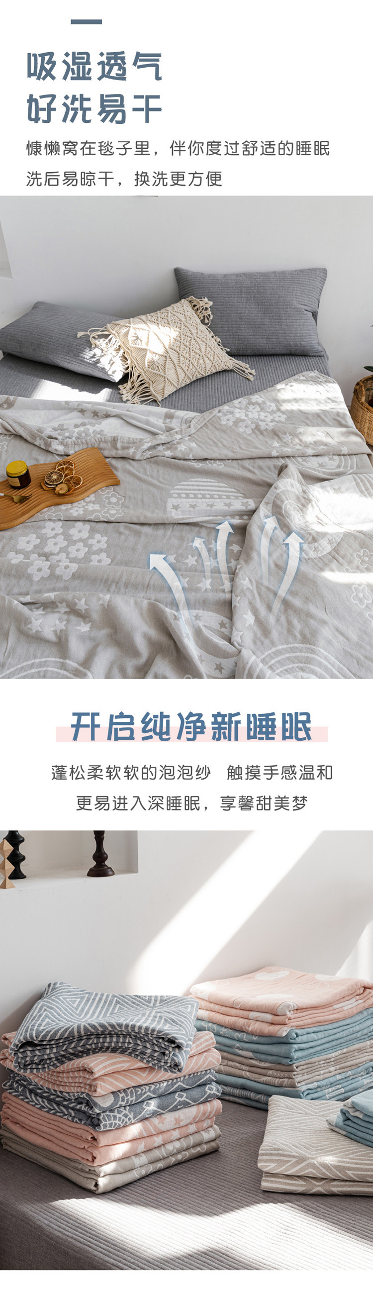朴尔 2020年新款加厚三层水洗棉全棉纱布毛巾被 星星点点-浅灰
