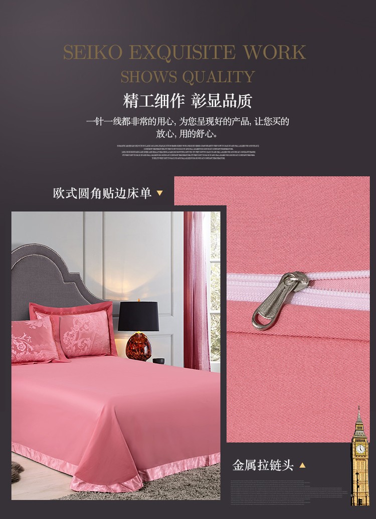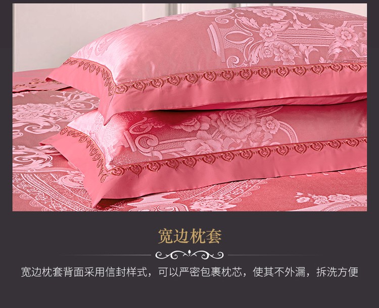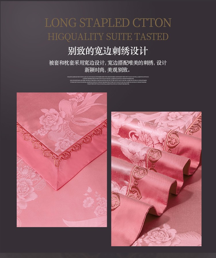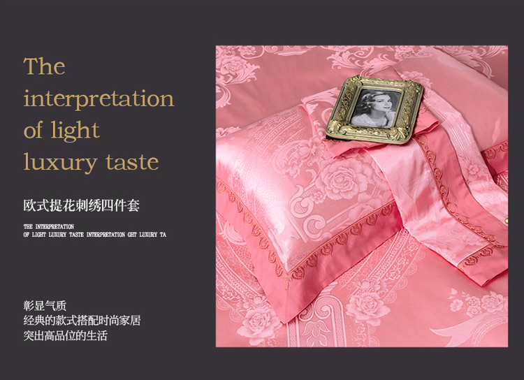 柔觉家纺 天丝刺绣贡缎提花全棉四件套,卡曼时尚-粉紫