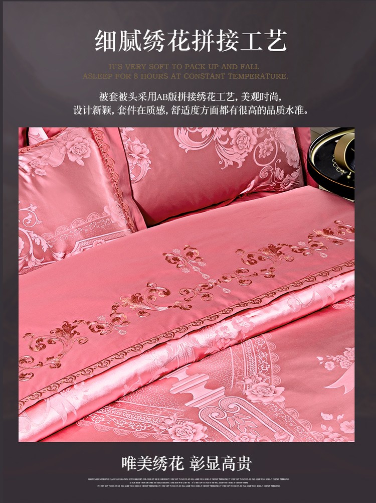 (总)柔觉家纺 天丝刺绣贡缎提花全棉四件套,艾利斯-兰金,宝琪-藕荷玉,罗娜恋歌-粉,奥威丽雅-蓝,奥薇丽雅(豆沙),龙凤交鸣(大红),罗娜恋歌-红玉,情恋花语(大红),罗兰庄园-靛蓝,莫奈情怀-蓝金,叶语浪漫-浅紫,约瑟情调-灰金,约瑟情调-魅紫,雅普诺-卡兰,小憩-雪青,科西利亚-金色,雅普诺-红灰,水汐-绸缎兰