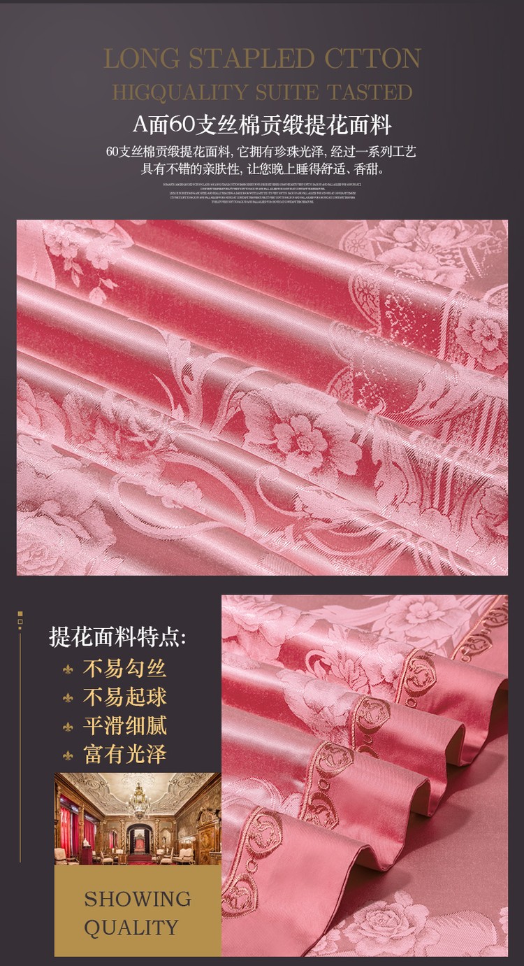 商品名称:60支丝棉贡缎提花经典绣花
