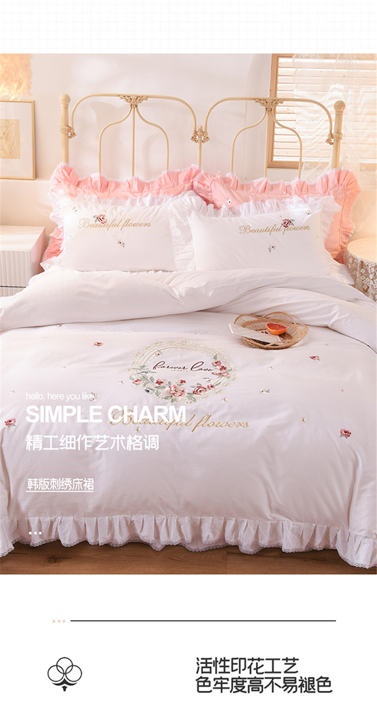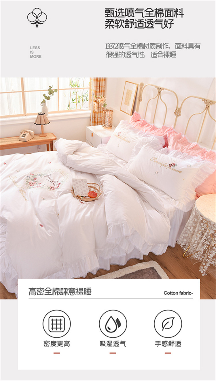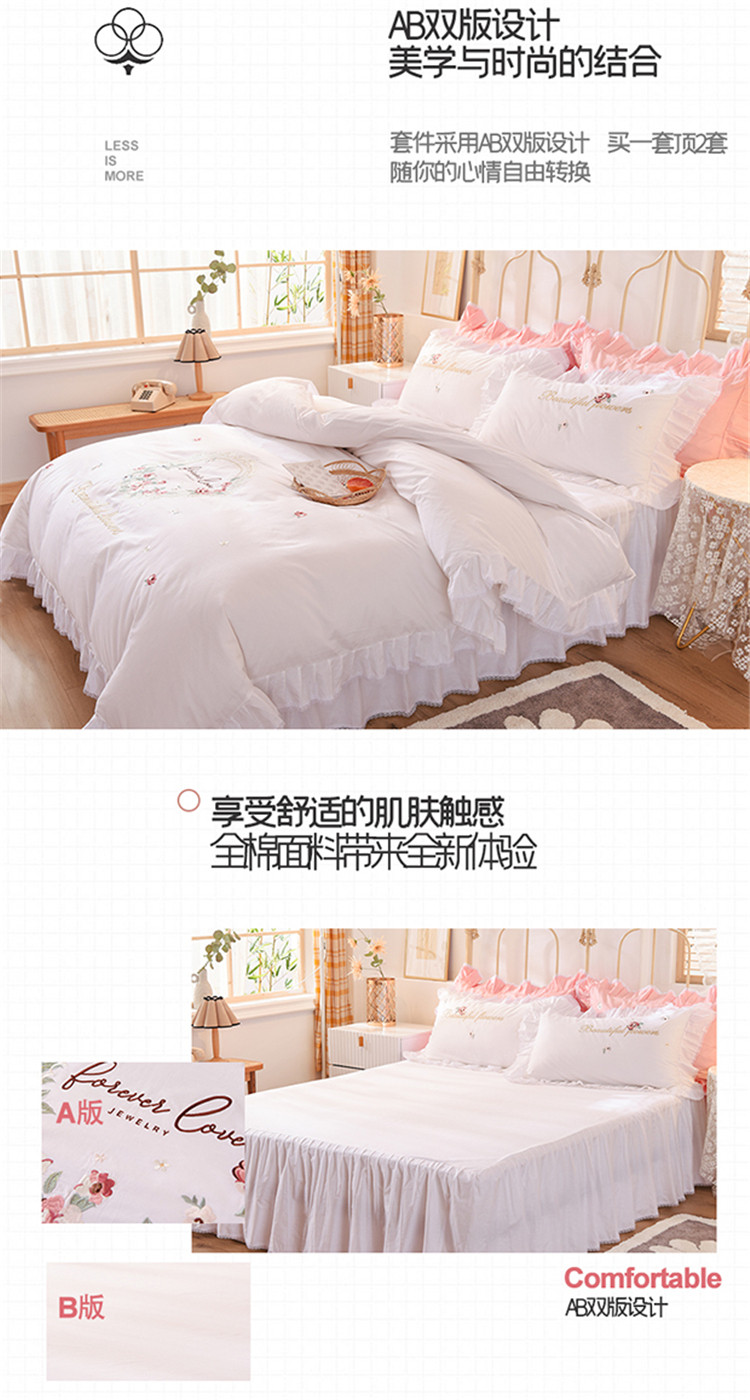(总)迪欧芙 2024春季纯棉13372公主风四件套刺绣花边四件套爱的结语系列,爱的结语-白,爱的结语-粉,爱的结语-蓝