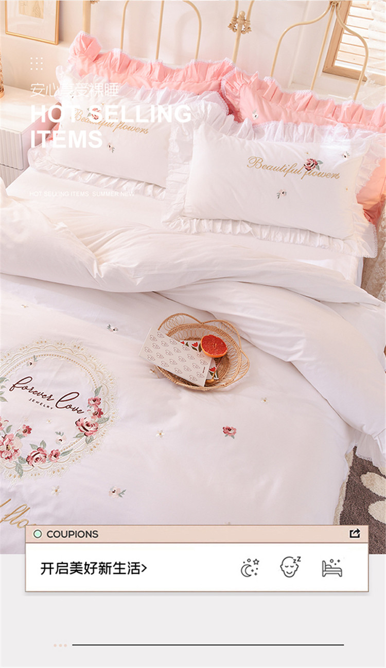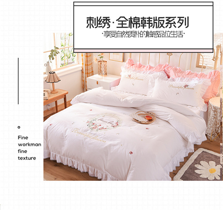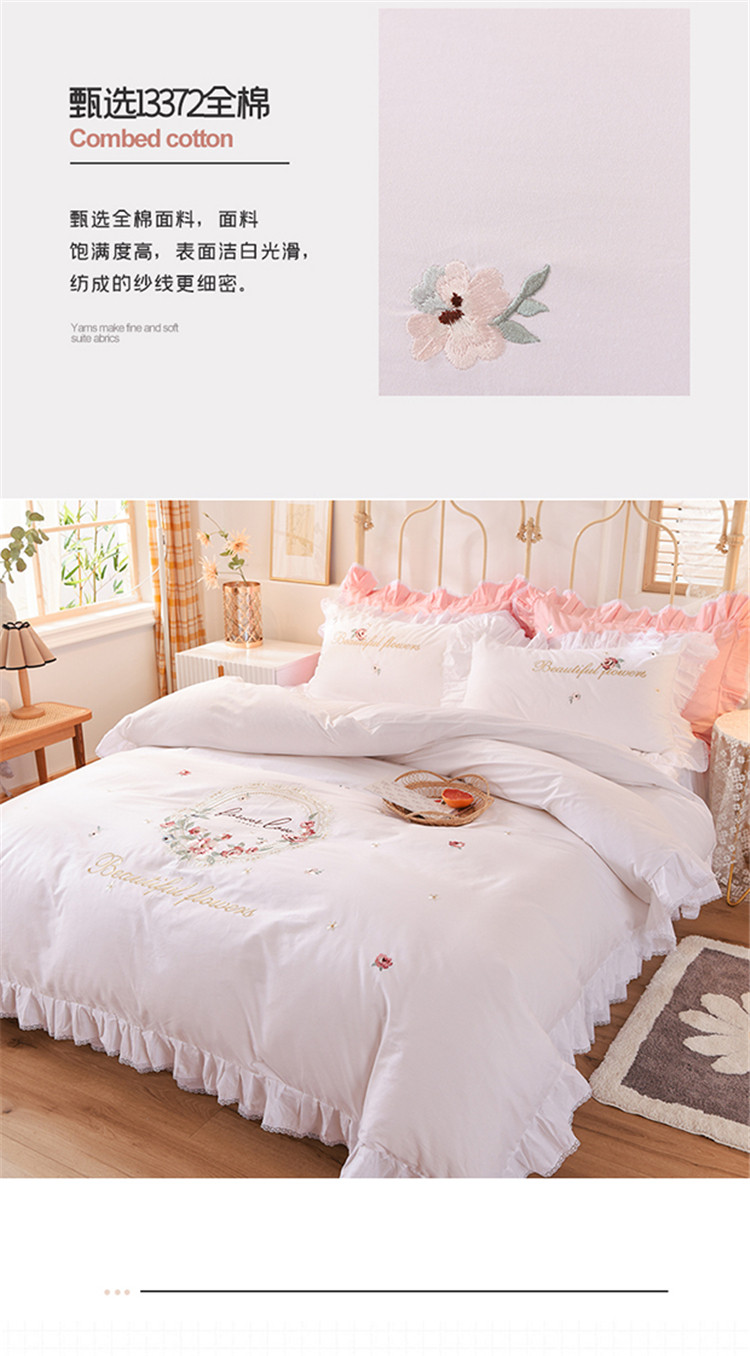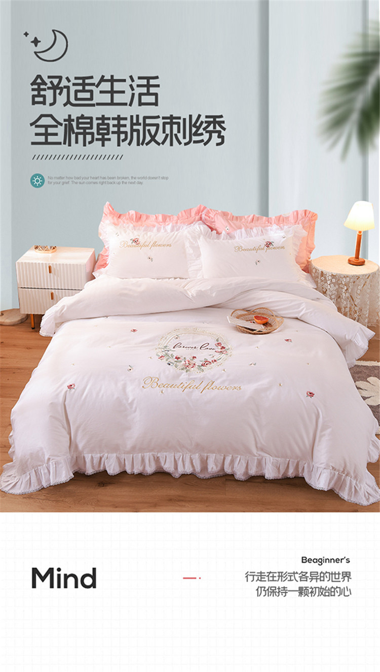 (总)迪欧芙 2024春季纯棉13372公主风四件套刺绣花边四件套爱的结语系列,爱的结语-白,爱的结语-粉,爱的结语-蓝
