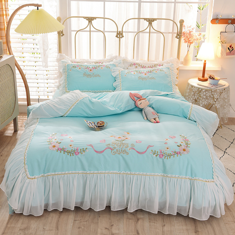 (总)迪欧芙2023新款纯棉全棉水洗棉刺绣工艺款四件套艾莉丝,艾莉丝-粉,艾莉丝-奶油白,艾莉丝-天空蓝