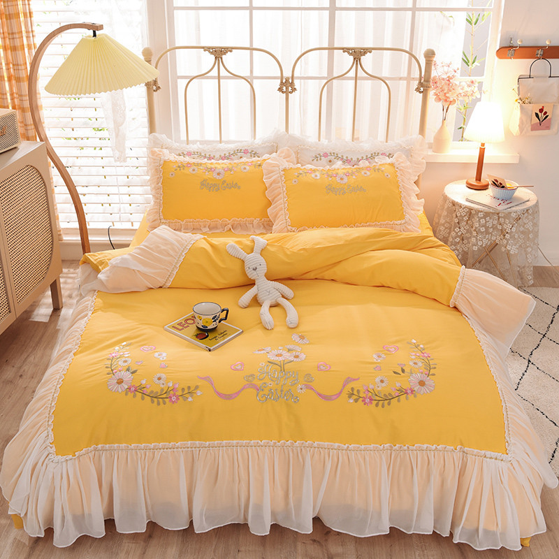 (总)迪欧芙 2023新款13372全棉公主风四件套-伊莉莎,粉玉,黄,蓝