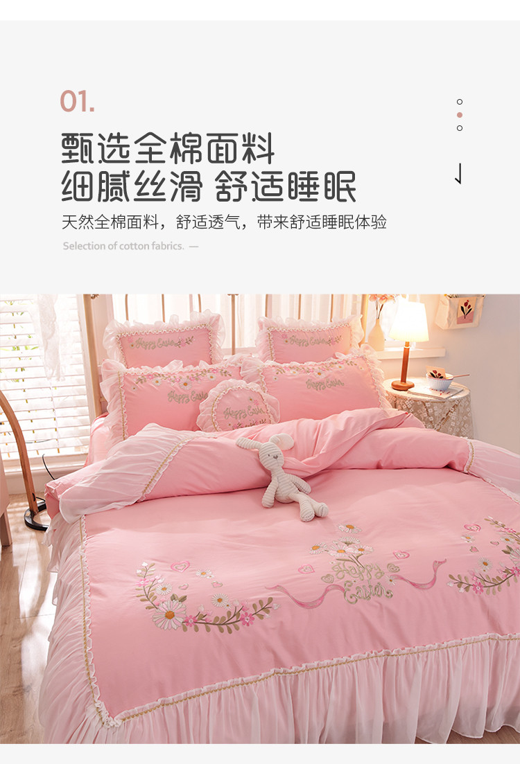 迪欧芙 2024春季纯棉13372公主风四件套爱的结语系列 爱的结语-粉,爱的结语-粉