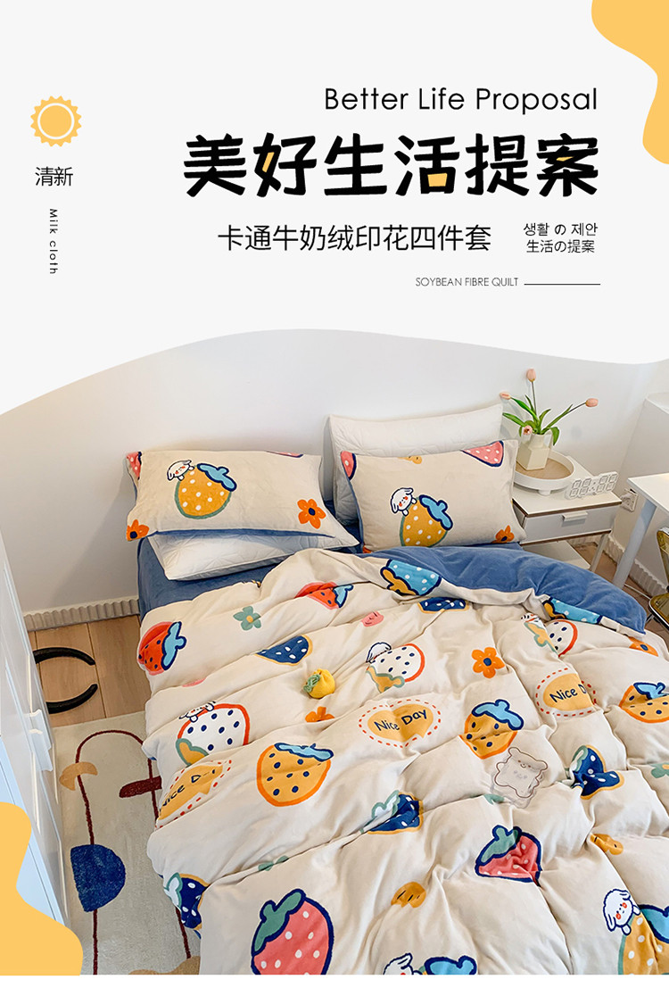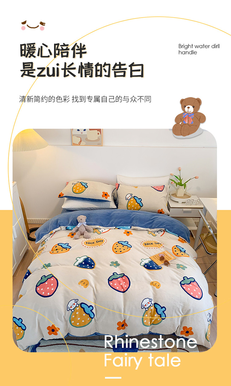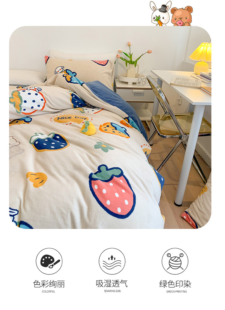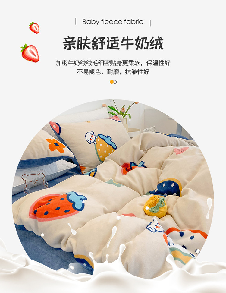商品名称:澳萝拉2021高克重卡通清新牛奶绒四件套水晶法莱绒 彩莓派