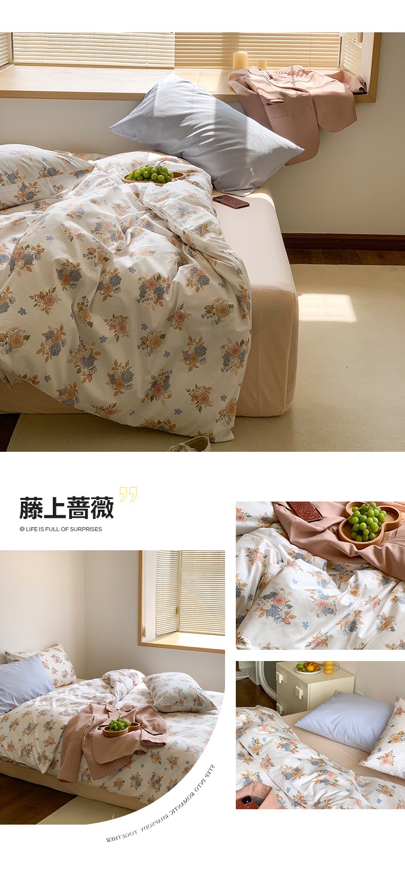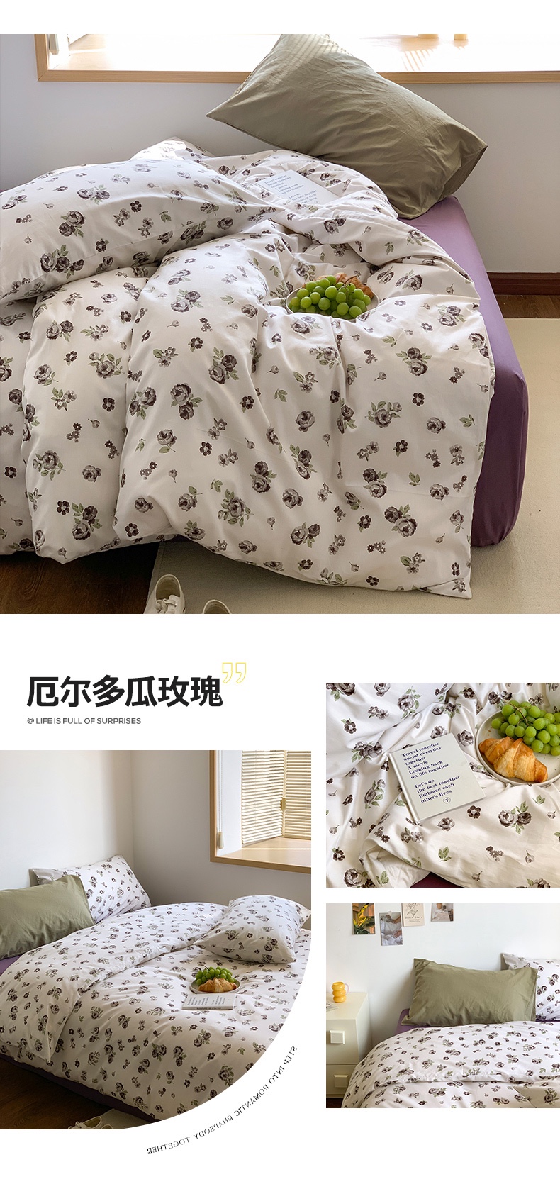 商品名称:(总)六巷胡同 2023新款ins韩国博主风小碎花混搭四件套